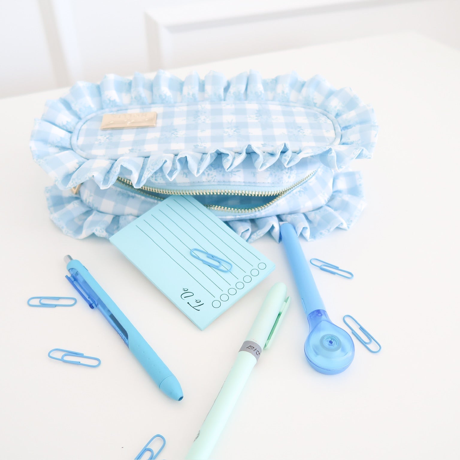 Introducing our newly launched nylon pencil bag! Add a pop of personality to your everyday essentials with our Ruffled Nylon Pencil Bag! Trimmed with our signature double ruffle, this glam little pouch is as practical as it is adorable. Whether it’s for pens and pencils, beauty must-haves, or chargers and cables, this bag keeps your small stuff cute and contained.