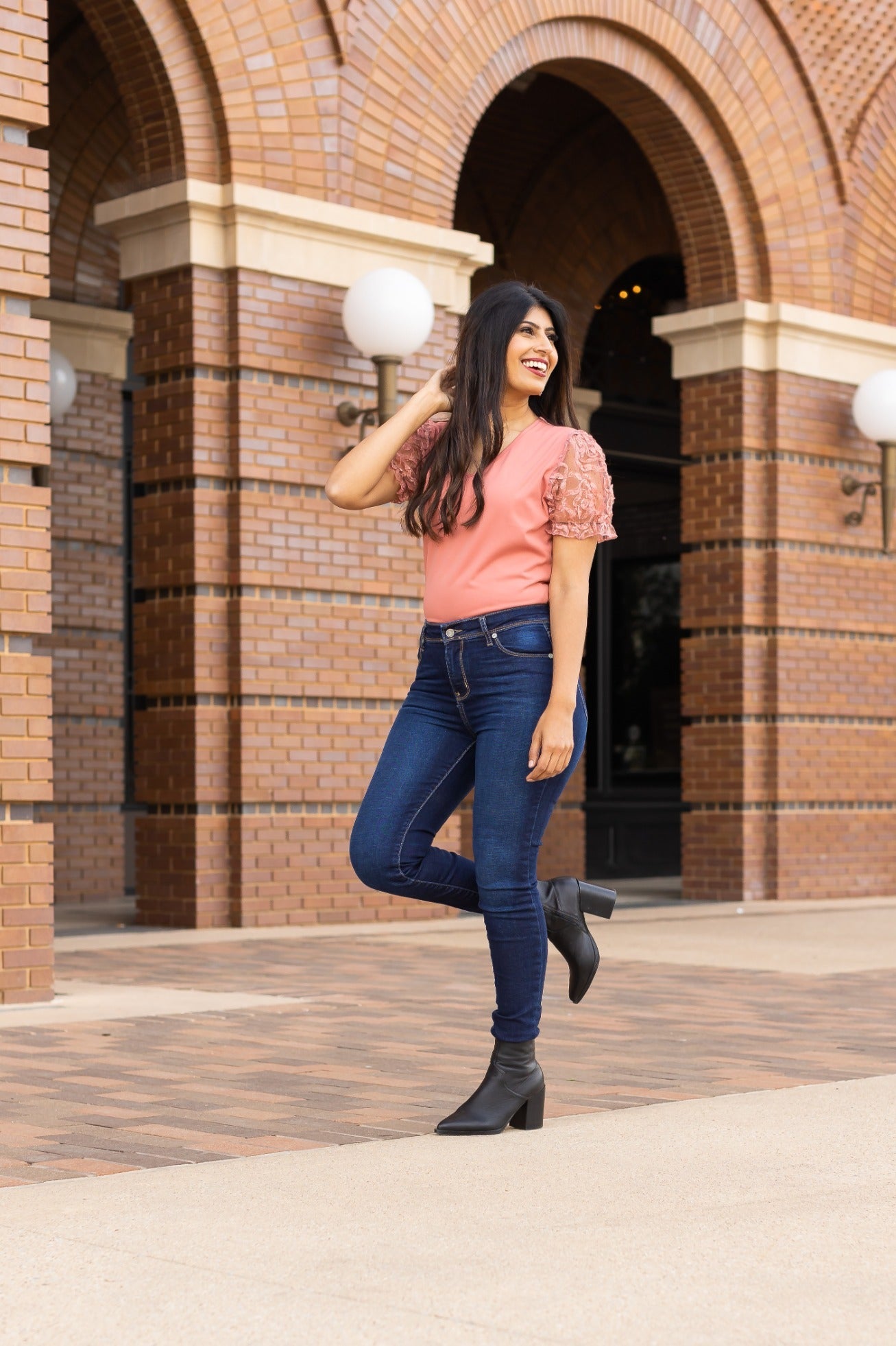 Maggie (5‘ 5" and Size 6 or S) is wearing a size Small Ashi ( 5‘ 5" and Size 4 or S) is wearing a size Small - Fit: Fitted