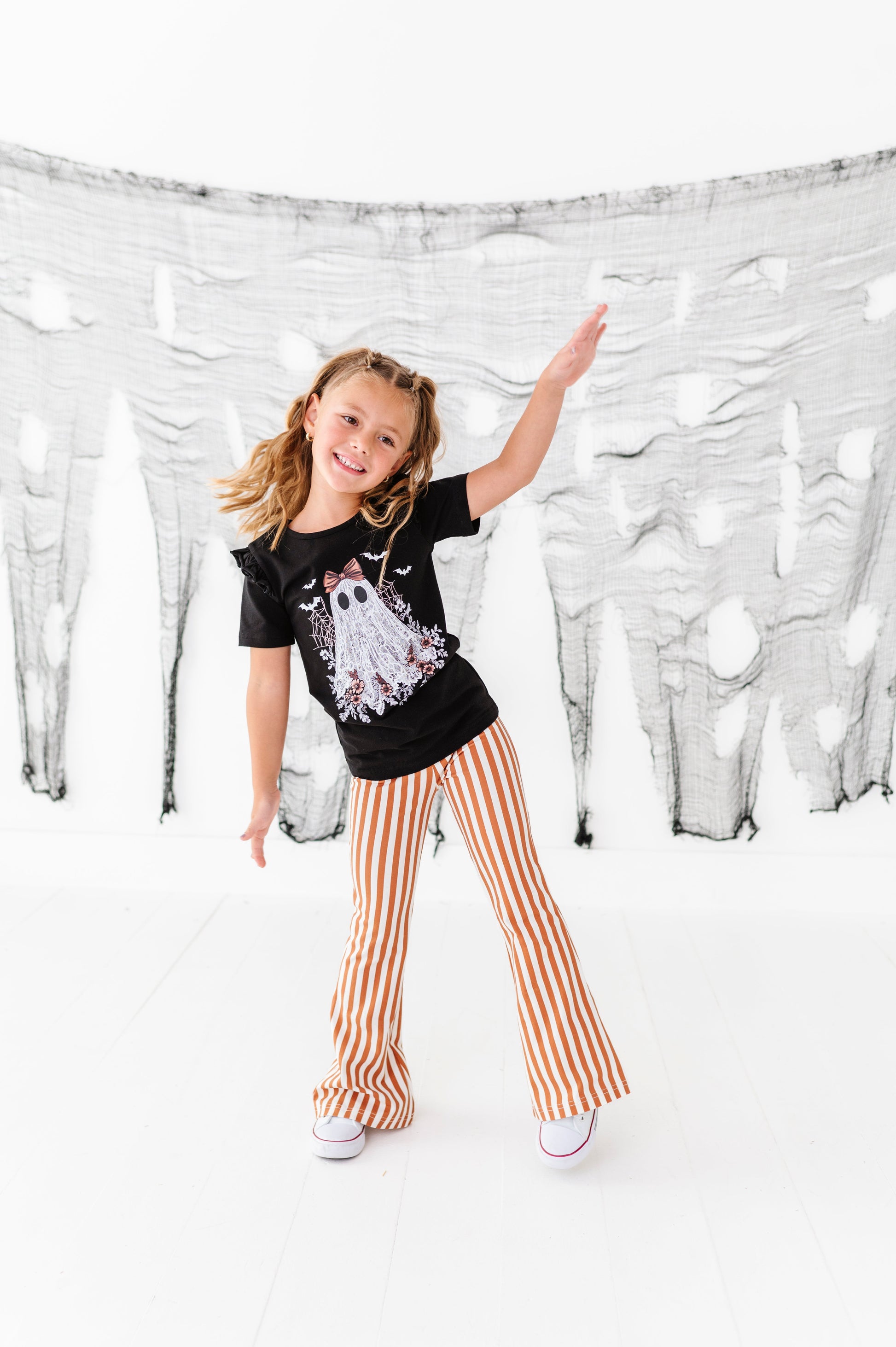 This item runs true to size. These are made to fit snug in the waist/hips and top of legs and then flare at the knee down. If you have a girl with long legs we recommend ordering the size she needs for pant length! If you have a shorter girl we don't recommend sizing up because you don't want flares to drag on the floor :)