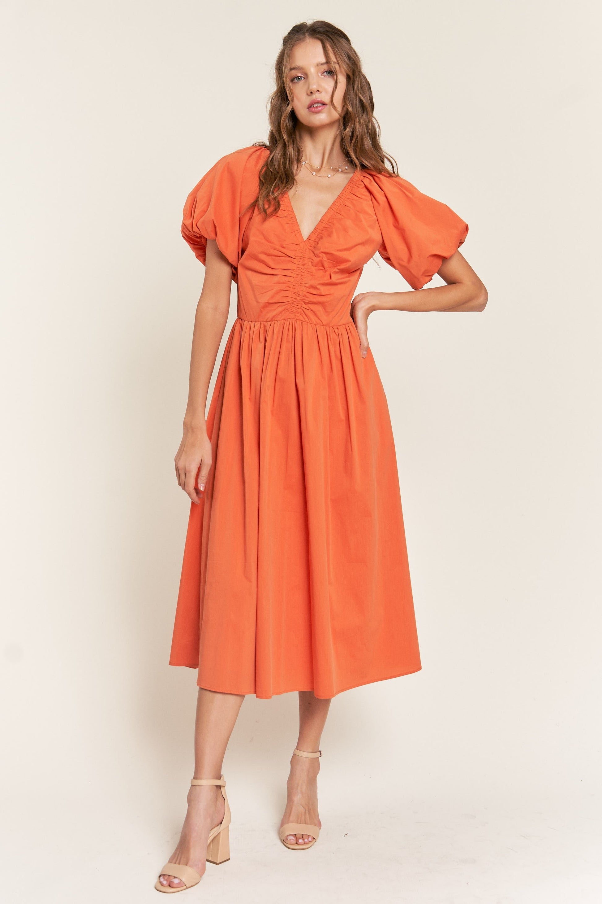 Rust V Neck Midi Dress