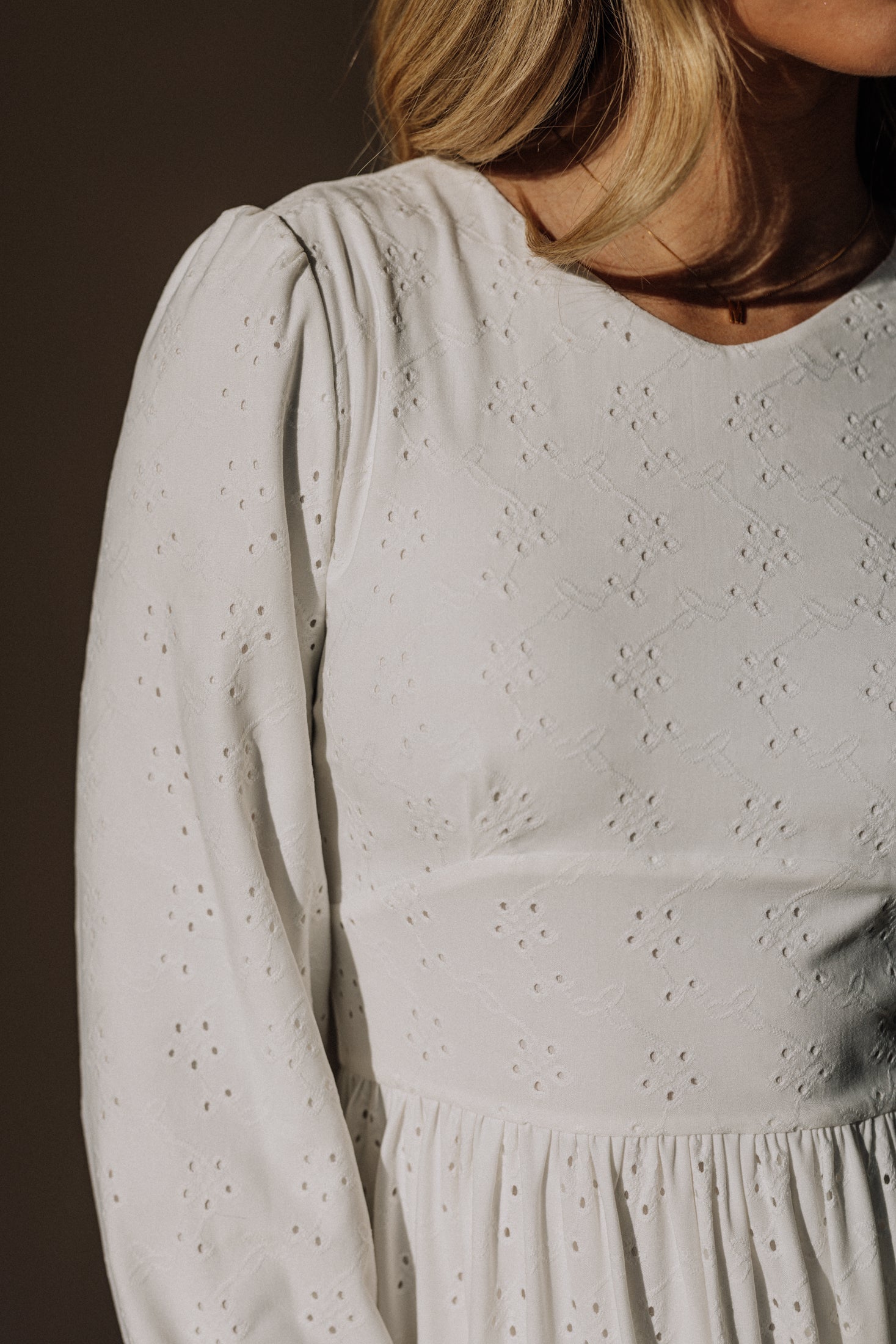 Indulge in the luxurious elegance of the Sandra Temple Gown. This maxi length dress features a stunning floral pattern that will make you feel like a work of art. The flattering waist adds an extra touch of sophistication, making this LDS temple dress the perfect choice for your attendance. This temple dress boasts one of our softest fabrics, if comfort is what you're going for, look no further! Hip pockets included