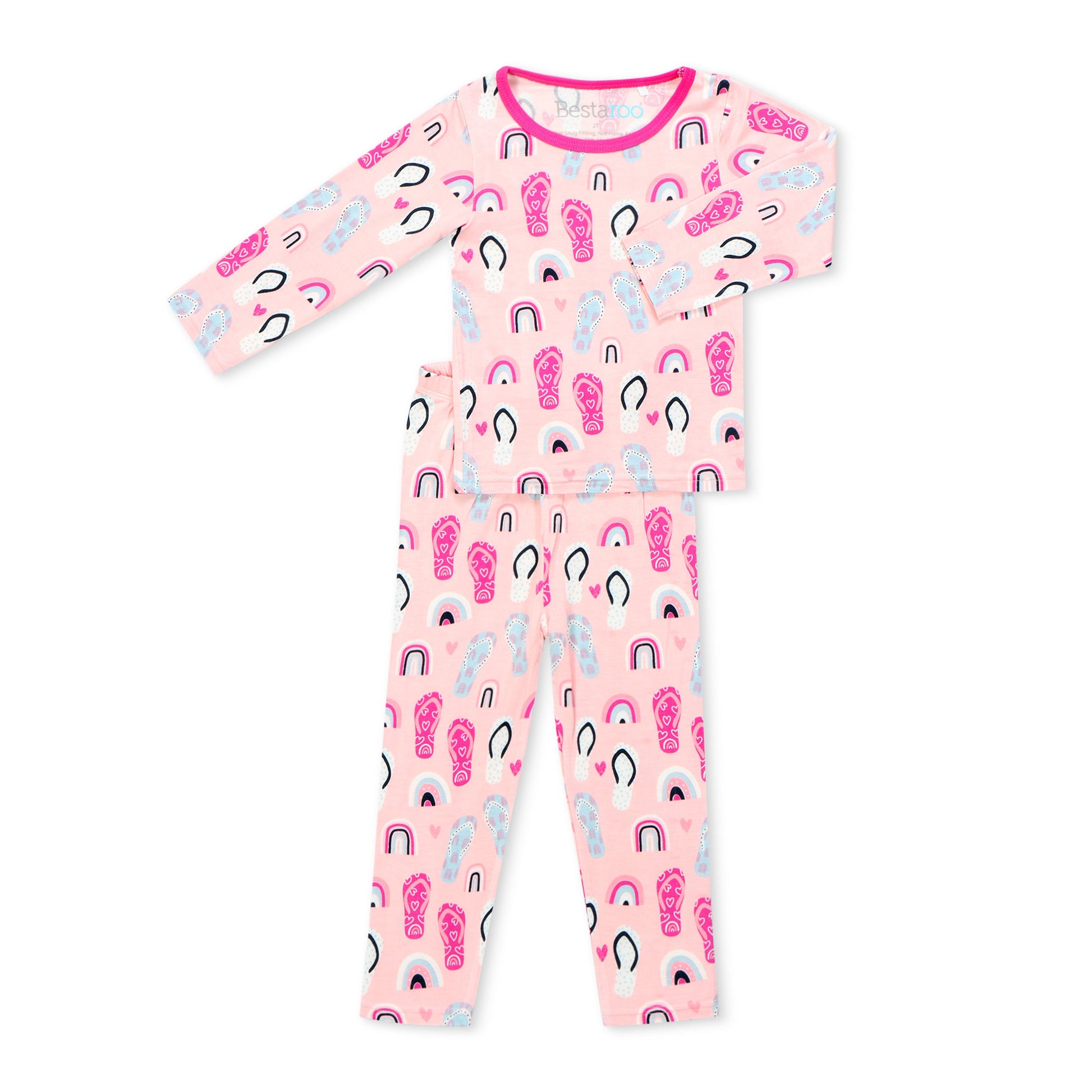 Crafted from a snuggly soft bamboo fabric, our pajama shirts and stretch waist pajama pants for kids and toddlers exceed expectations in terms of smoothness and softness. Casual children’s apparel doesn’t get much comfier than these mix-and-match separates. They’re cozy sleep clothes tiny tots won’t want to ever take off. And they won’t have to. Our 2pc PJ sets are available in stylish colorways, trendy prints and cute patterns.