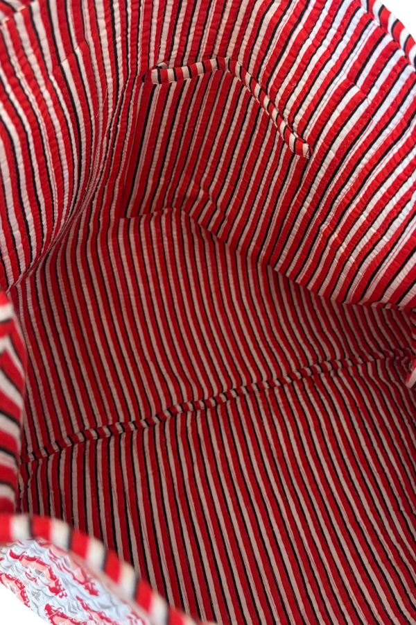 Bold, cozy, and ready for crisp fall days—this gray/blue, red, and orange floral tote is a standout staple for the season. The moody gray background sets the stage for vibrant red and burnt orange blooms, creating a striking contrast that's both stylish and seasonally perfect. With its soft quilted texture and roomy interior, this tote transitions seamlessly from weekday errands to weekend adventures. It's the kind of bag that brings warmth and charm wherever it goes.