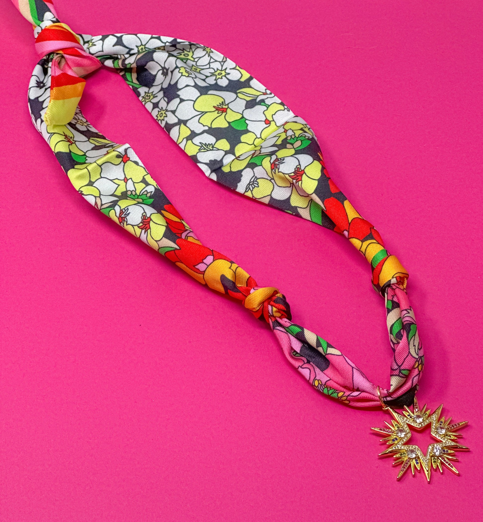 Scarf Charm Necklace - Black Multi with Rhinestone Star