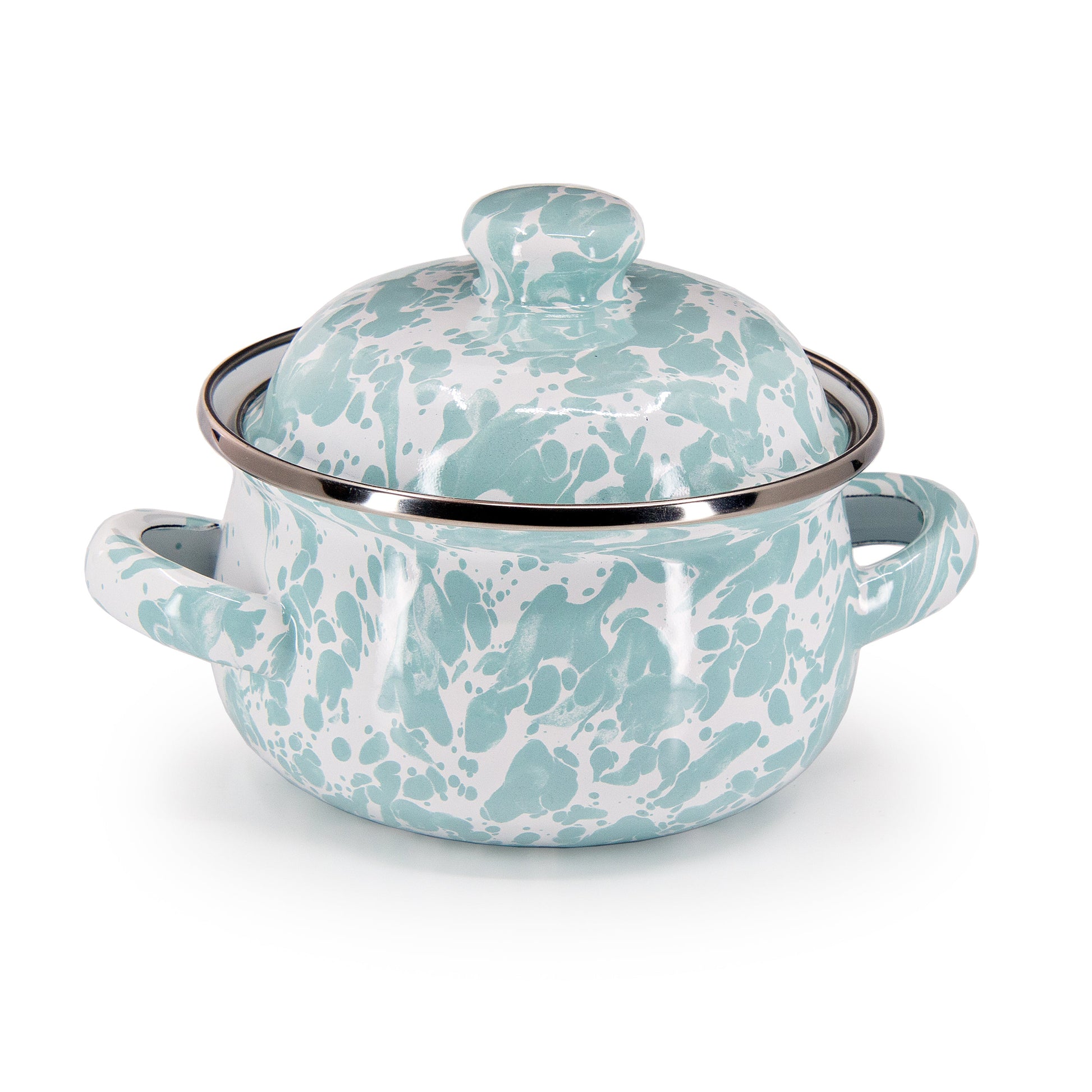 Inspired by the soothing tones of the sea, the Sea Glass Swirl Petite Tureens bring a calm, coastal aesthetic to your dining experience. These sets of two feature gentle blue-green swirls, perfect for serving your favorite soups, sauces, or sides. Crafted from durable enamelware, these petite tureens offer both beauty and practicality for everyday use.
