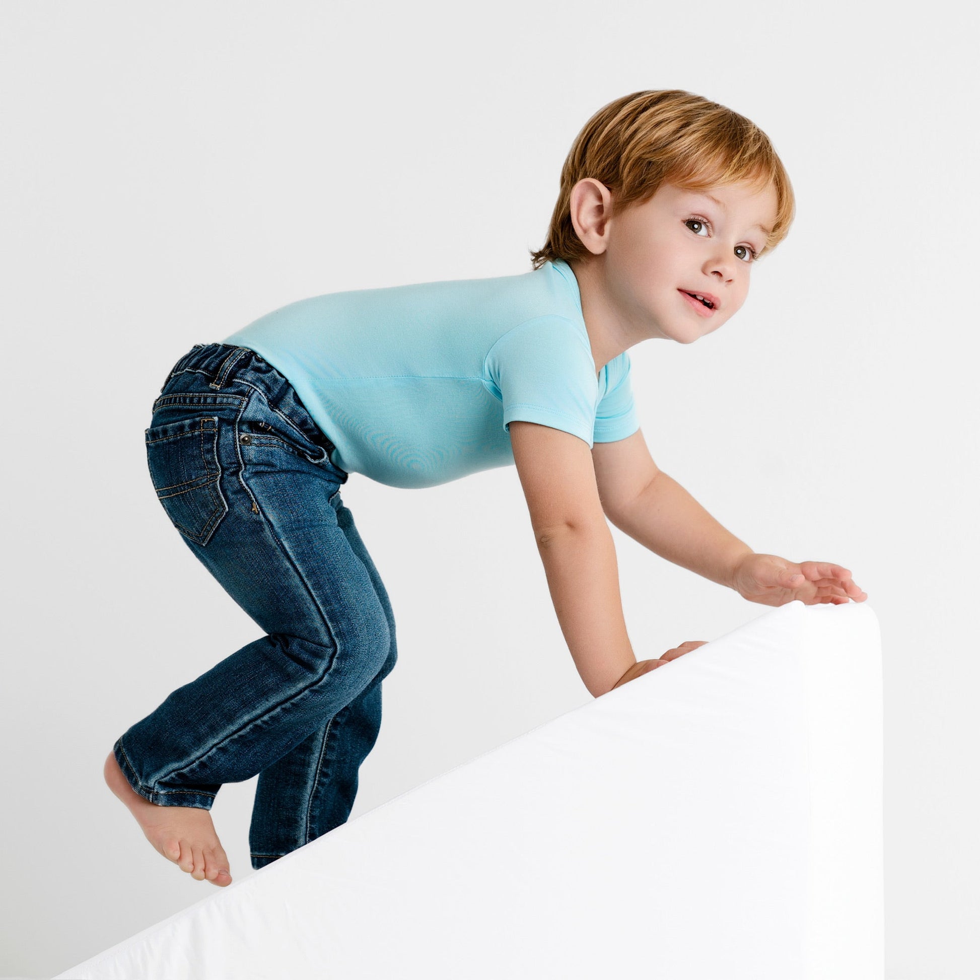 - Tagless comfort that’s gentle on sensitive or eczema-prone skin