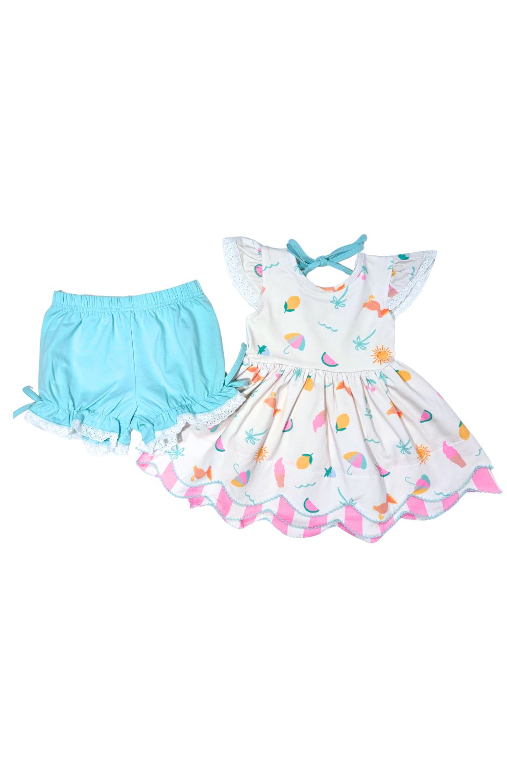 - Sizes 6m-4T include bloomer shorts; Sizes 5Y and up include lace trimmed shorts