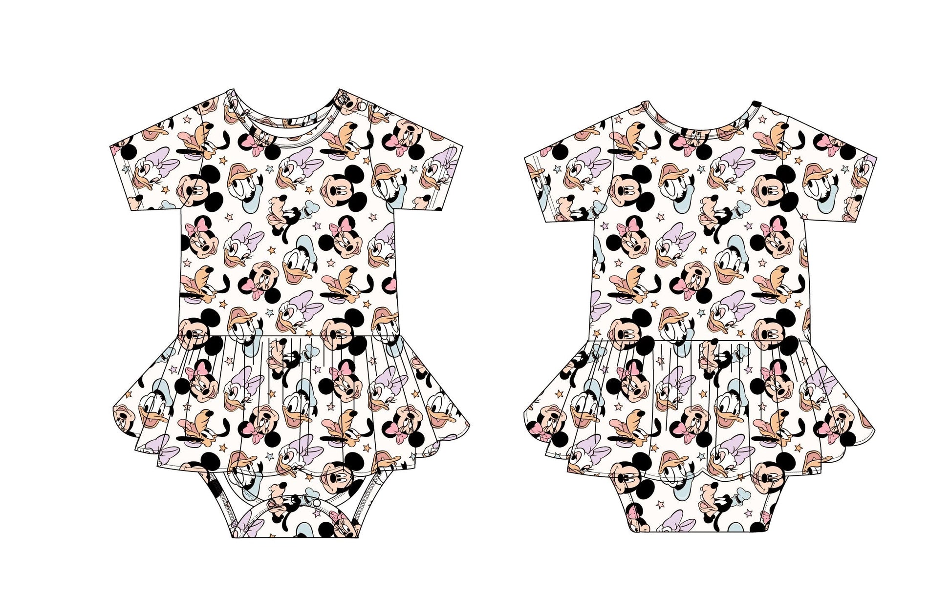 Crafted from buttery-soft, breathable bamboo viscose, these dresses provide all-day comfort for your little one. The built-in bodysuit includes snap closures for quick and hassle-free diaper changes, making them as practical as they are adorable.