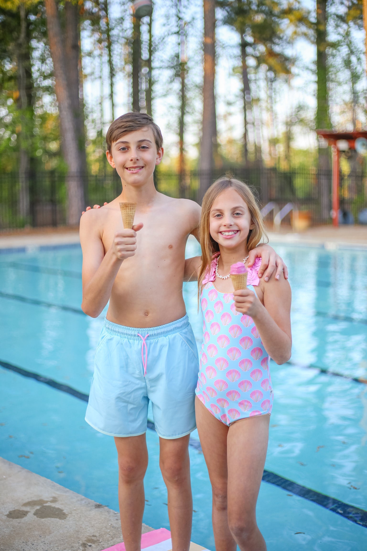- Made from UPF 50 swim material (82% polyester; 18% spandex)