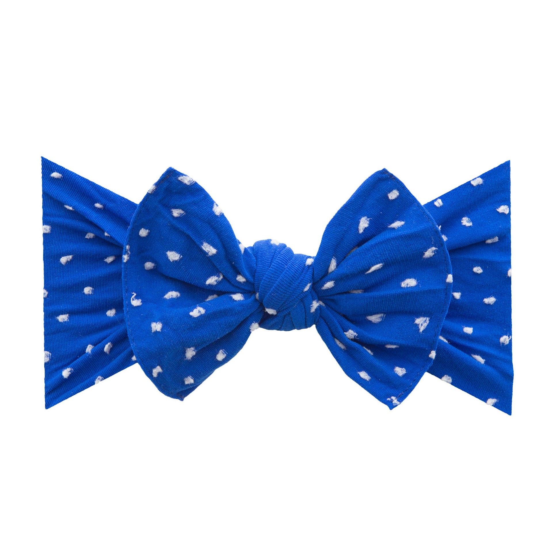 Shabby is the new chic with our woven dot pattern! The raised dots add texture and detail to your favorite Knot style headband! This headband is one size fits most and the size cannot be adjusted. The headband is sewn at a 6.5" diameter (13" circumference), keep in mind that measurement is before it stretches. We feel this is the perfect size for our soft nylon to fit a newborn and stretch comfortably as she grows into childhood. The bow measures approximately 4" across. The exposed stitching detail and a raw edge is signature Baby Bling! This style is sewn in two pieces and can be taken apart for hand washing or to mix-and-match. The Patterned Shabby Knot material is a soft nylon/polyester/spandex blend, produced to our specifications, in the USA . Each headband is hand sewn and tied by women in our local community. Due to the nature of small-batch production color and sizing can vary slightly.