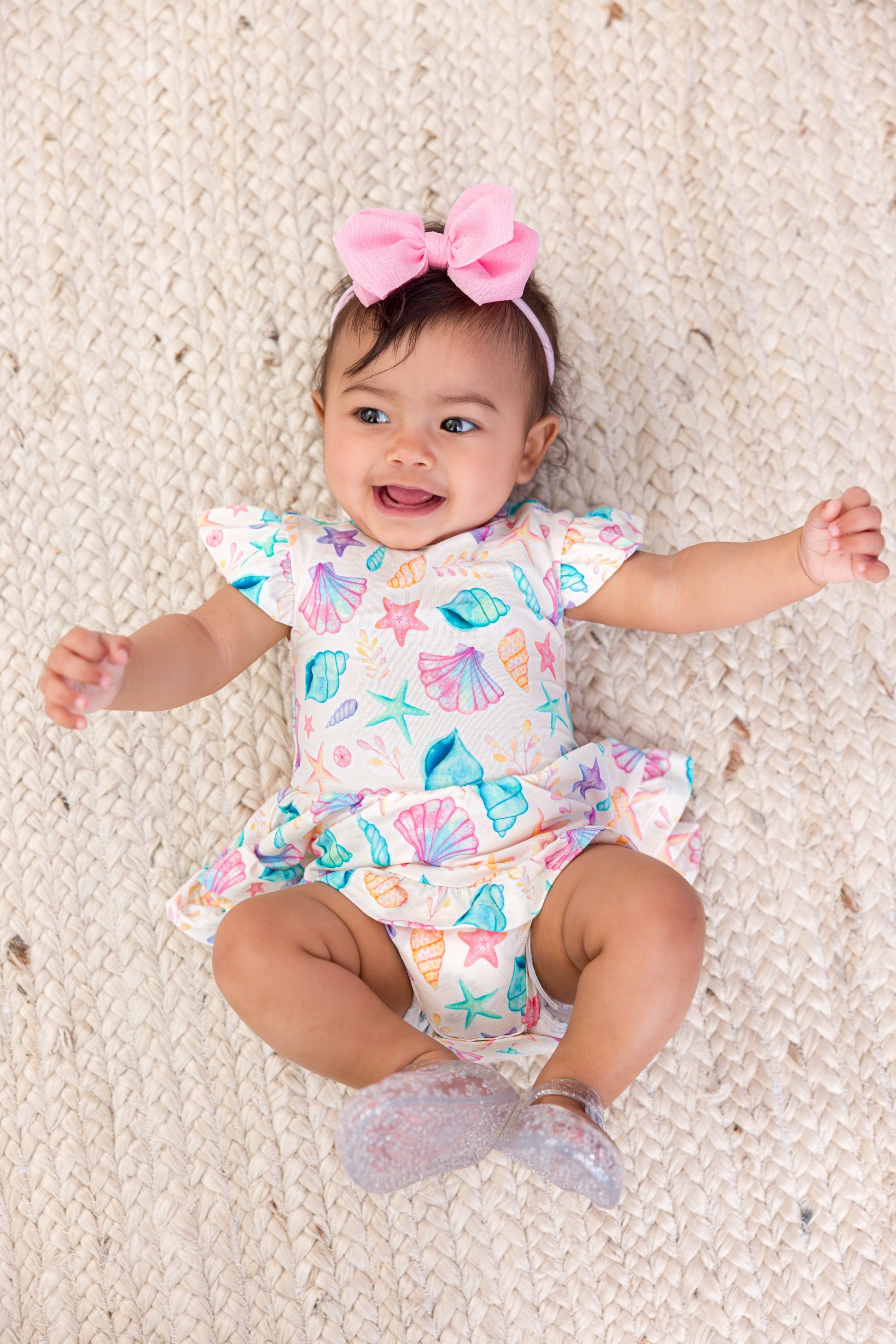 A seaside spin on the perfect twirl! This baby twirl romper brings playful charm and all-day comfort in one darling design. Made from our ultra-soft bamboo viscose blend, it offers lightweight breathability and stretch for wriggly little ones. Finished with ruffled sleeves and a snap closure for easy changes, it's as cute as it is cozy!