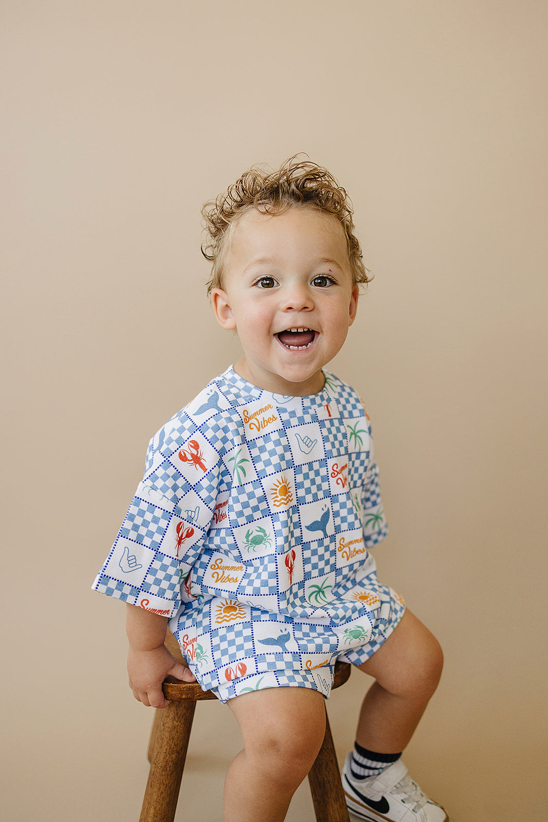 Summer Vibes | Shorts Set brings all the coastal cuteness—with lobsters, suns, palm trees, and checkers in the mix.
