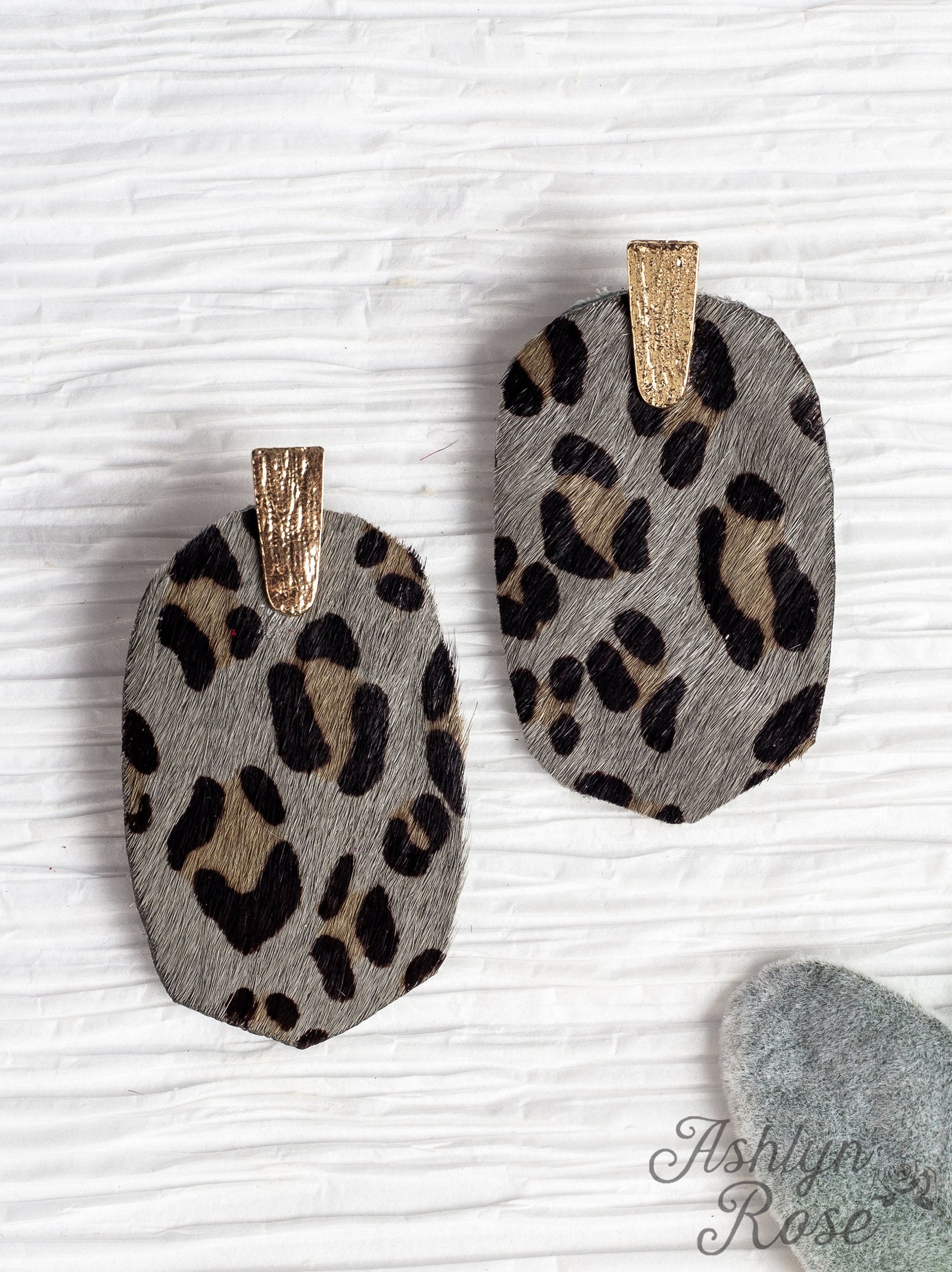 Should've Been Better Oval Leopard Earrings, Grey