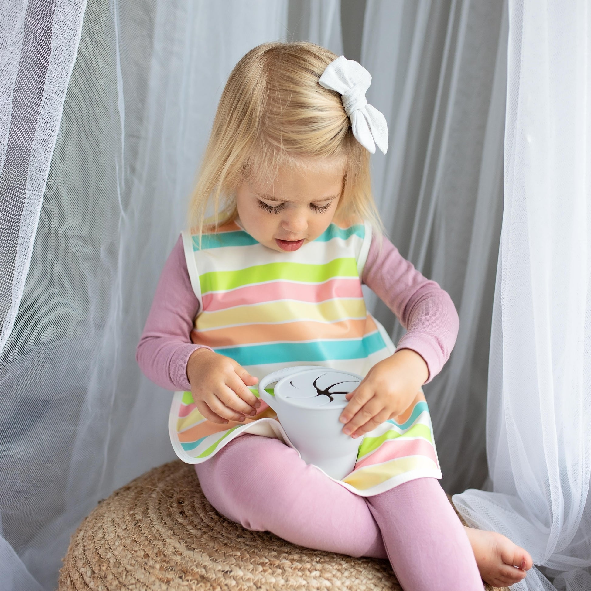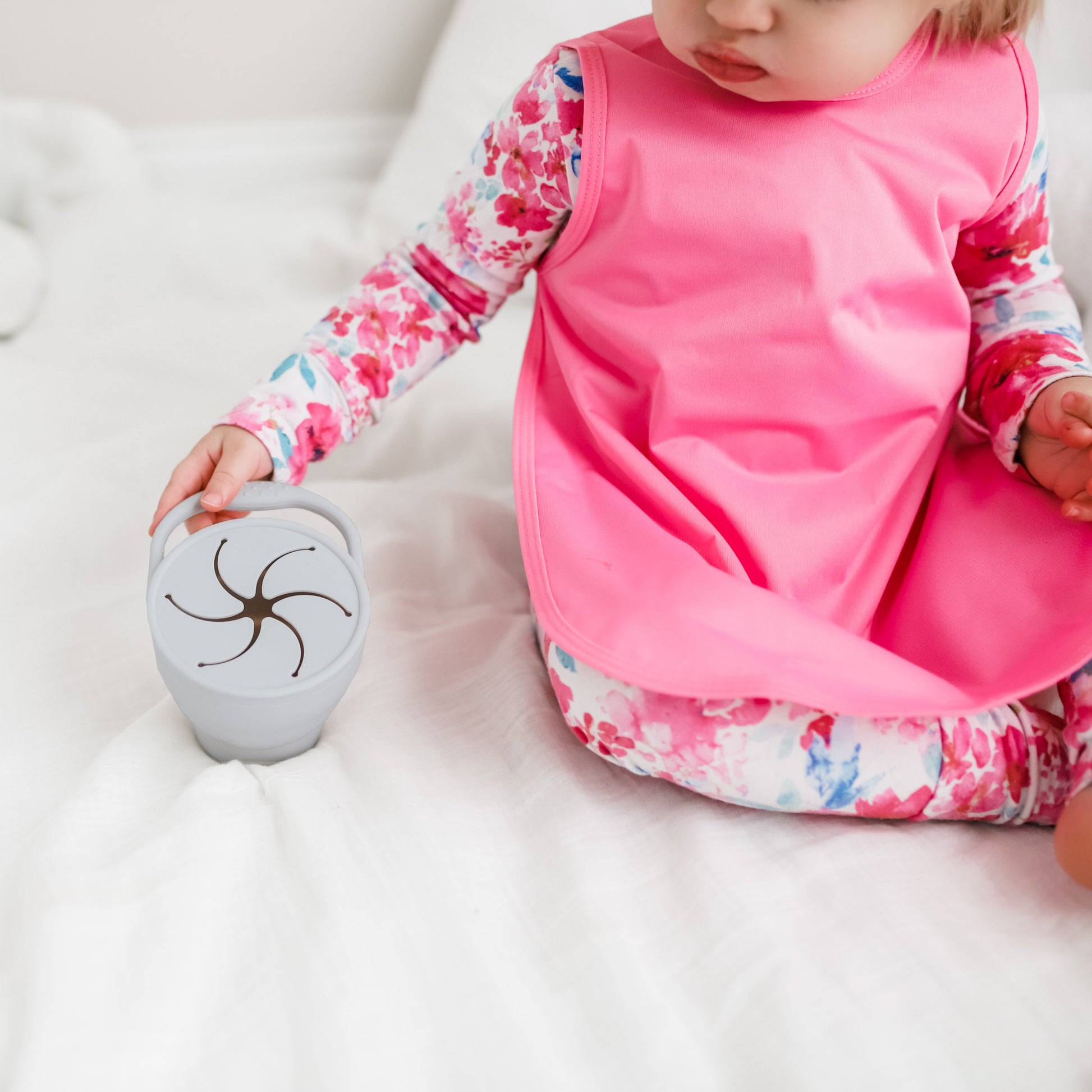 No more spilt snacks! The BapronBaby Silicone Collapsible Snack Cup is the perfect accessory to keep your little ones snacks off the floor. Portable size and foldable, ideal for indoor and outdoor use. The matching lid helps to make sure snacks don't escape when you are on the go.