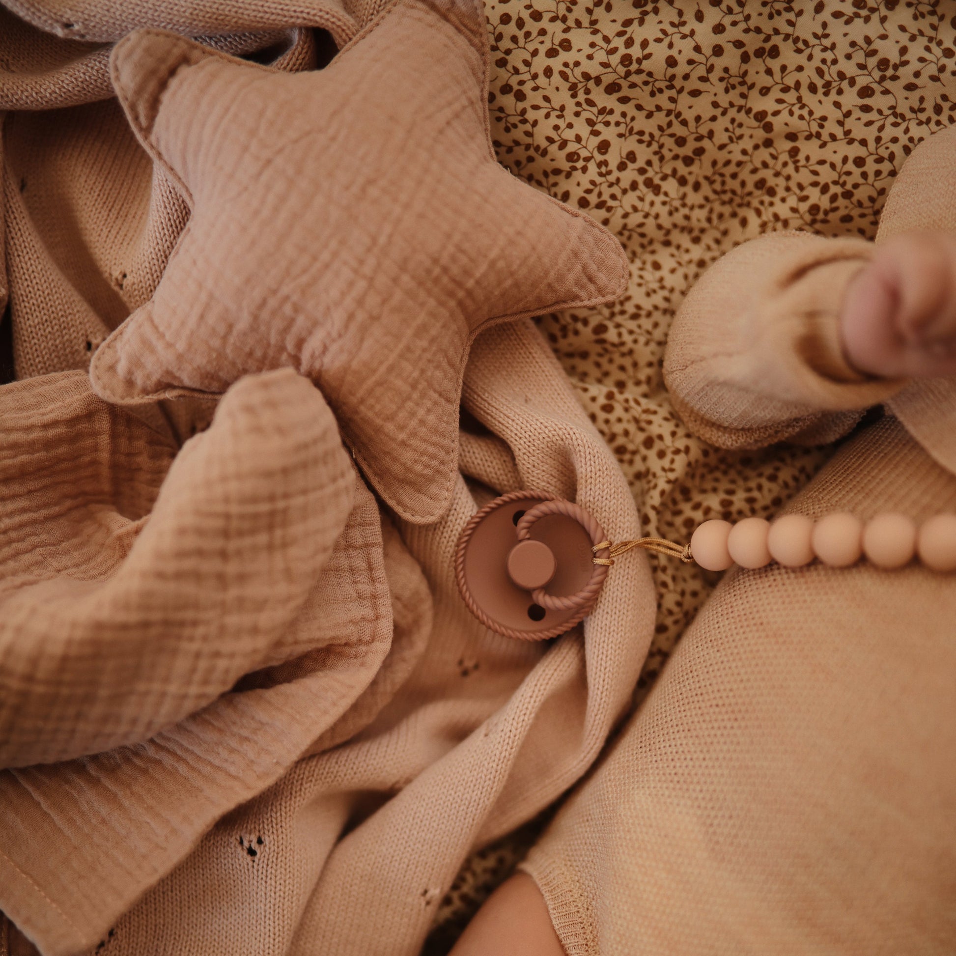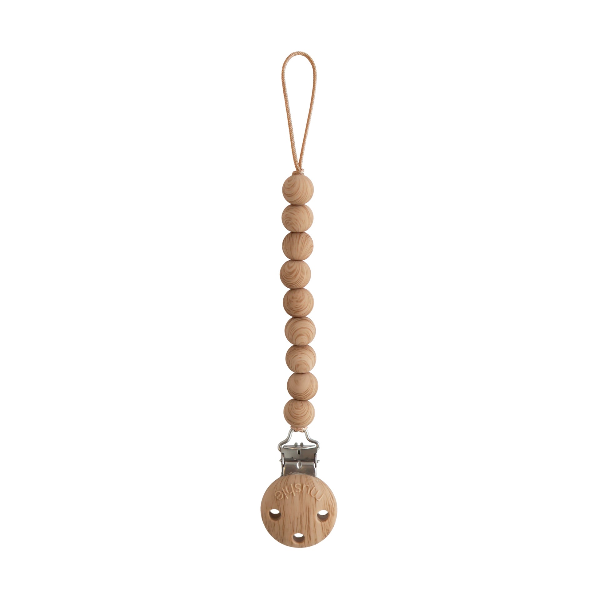 The Mushie silicone pacifier clip offers durability, function and simplicity to families on-the-go. Made from 100% food-grade silicone, our clip features a silicone clasp that brings a modern take to a traditional favorite. With a single color stack of silicone beads, the Hera clip offers families a beautiful accessory in a minimalist design. The clip is easy to clean and helps keep soothing items in reach for little ones.