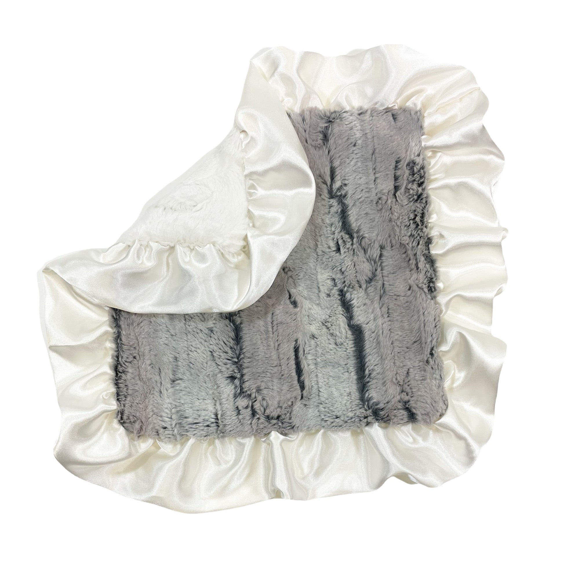 Introducing our exclusive Silver Snowfox Luxury Lovie, a miniature masterpiece of comfort and style. This exceptional lovie blanket is meticulously crafted using 100% polyester faux fur cuddle, offering unmatched softness and warmth for your little one.