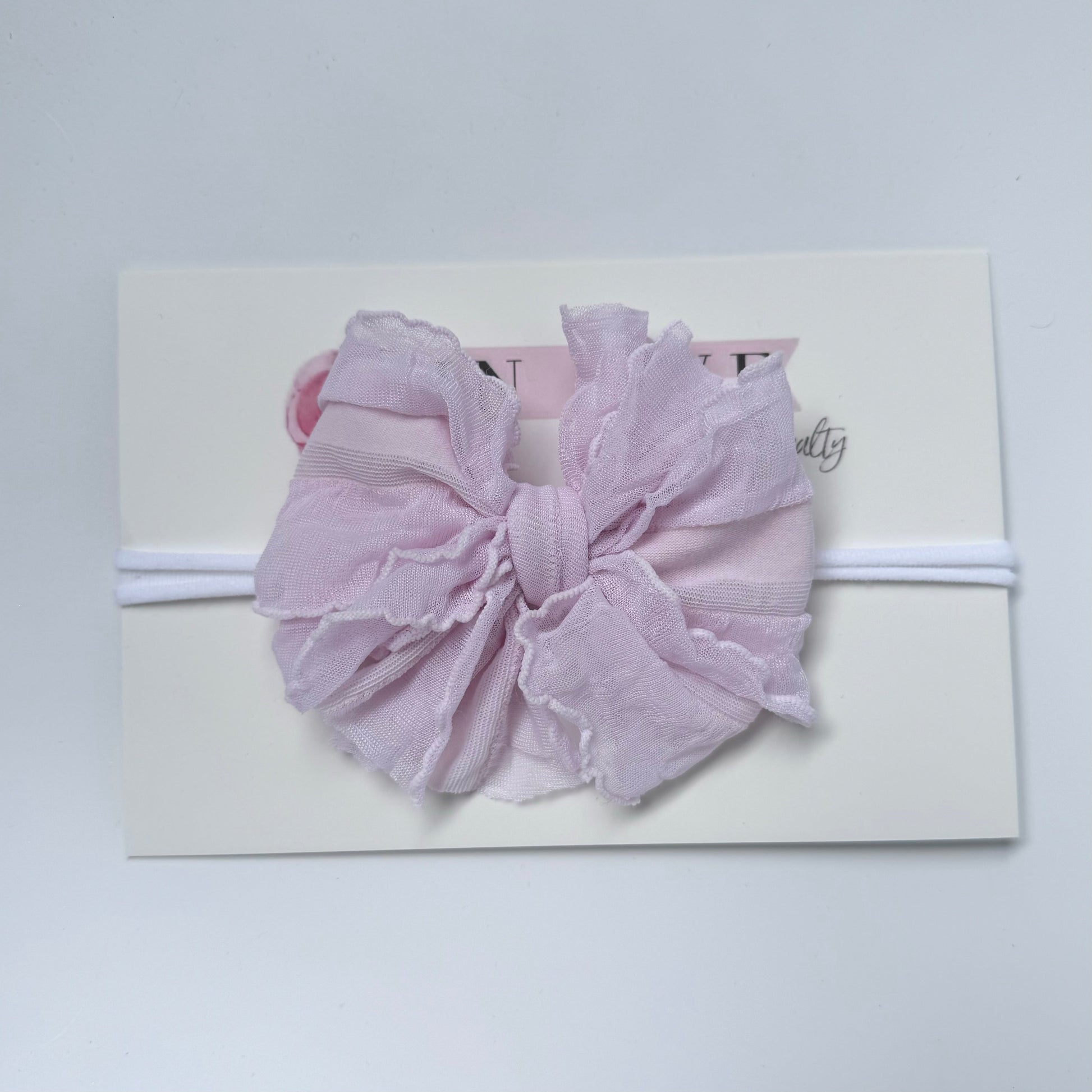 Skinny Mini Ruffled Headband- Baby Pink