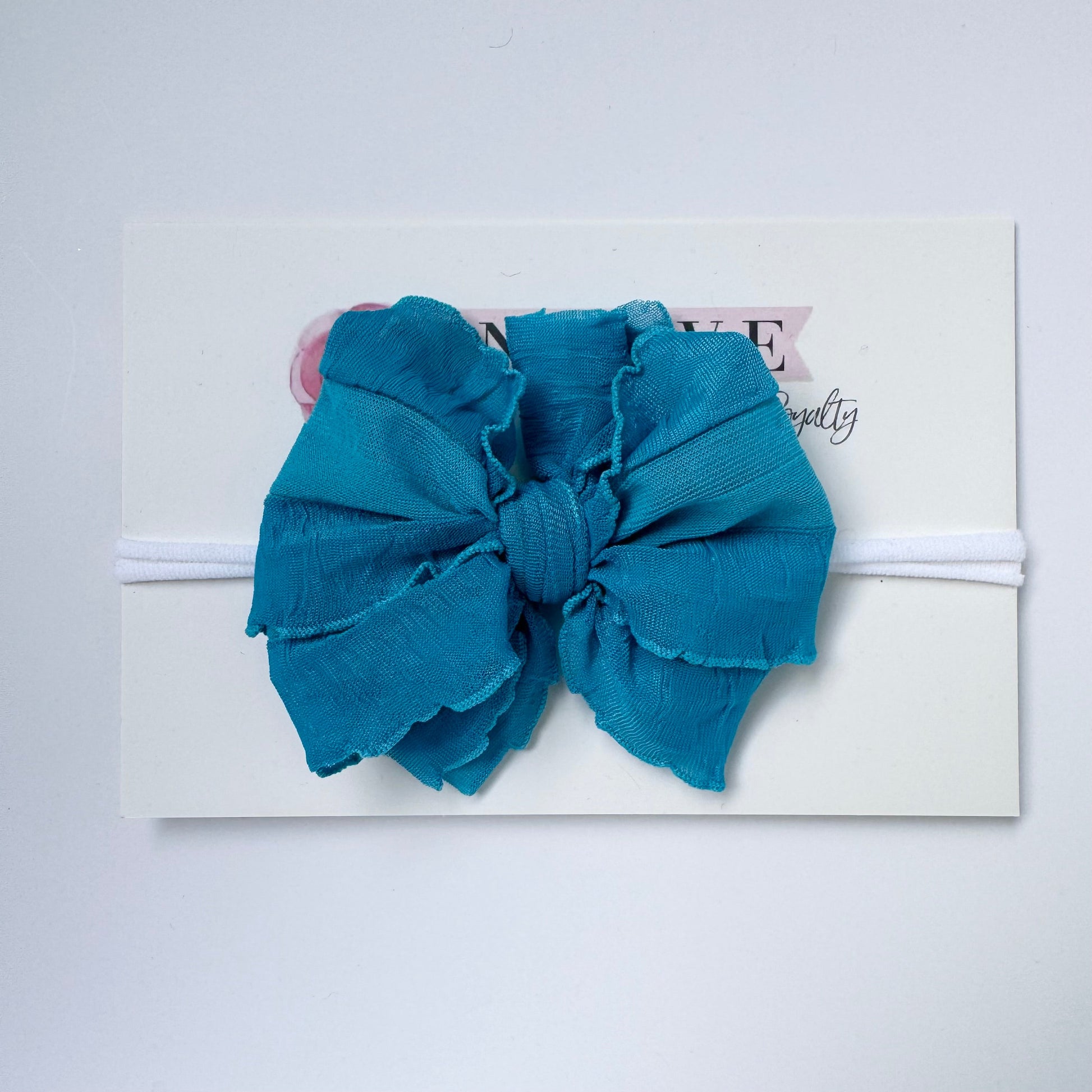 This 4-inch Ruffled Bow on Skinny Nylon Headband is not only a stylish accessory but also a practical choice for everyday wear. It adds a touch of elegance to any outfit, whether it's a cute onesie or a fancy dress. The versatility of this headband makes it suitable for various occasions, from casual outings to special events, ensuring your baby looks picture-perfect in.