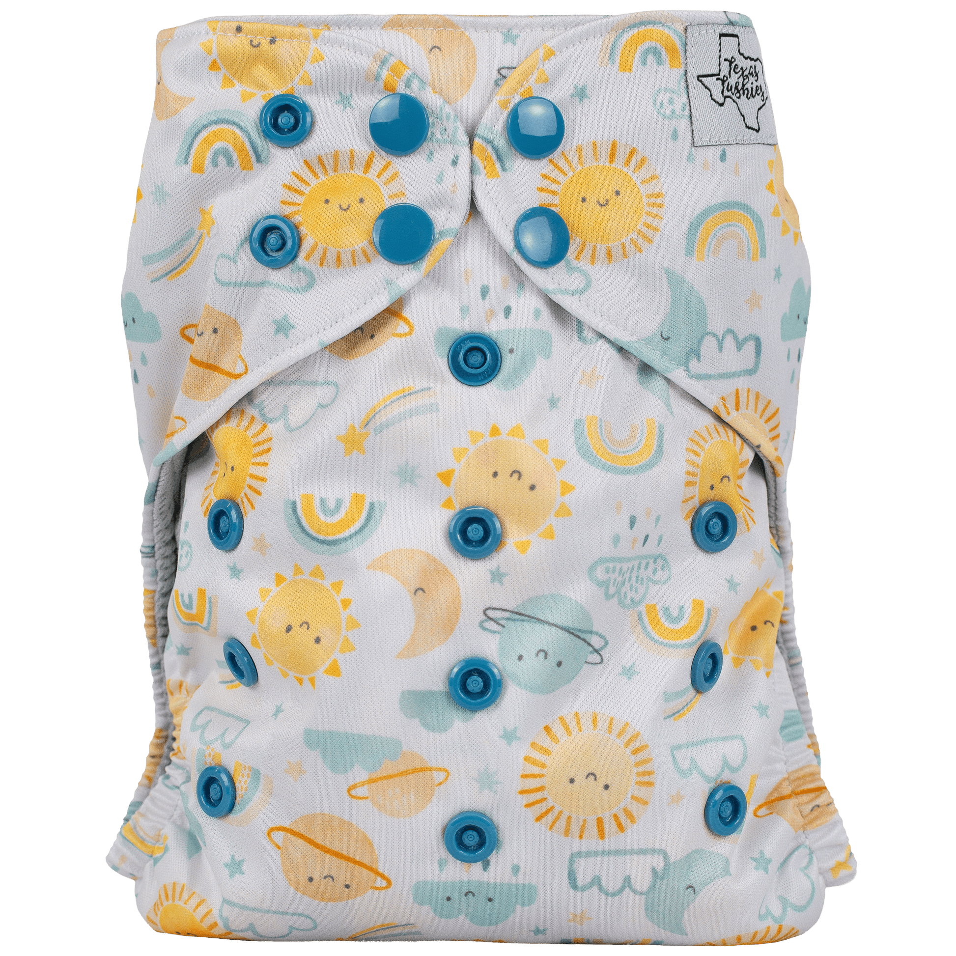 Our polyester jersey material is a light and breezy fabric, similar to athletic shirts. It’s a comfortable material that keeps your baby cool and dry, especially on those hot Texas summer days!