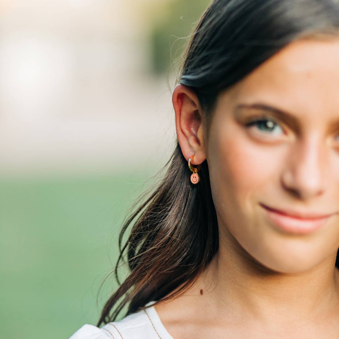 This charm is styled on our Smooth Huggies (Gold) and Studded Huggies (Silver).