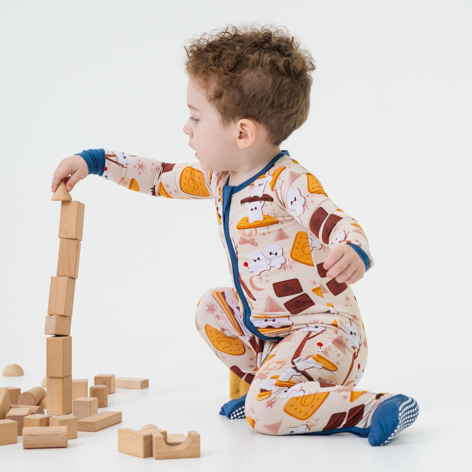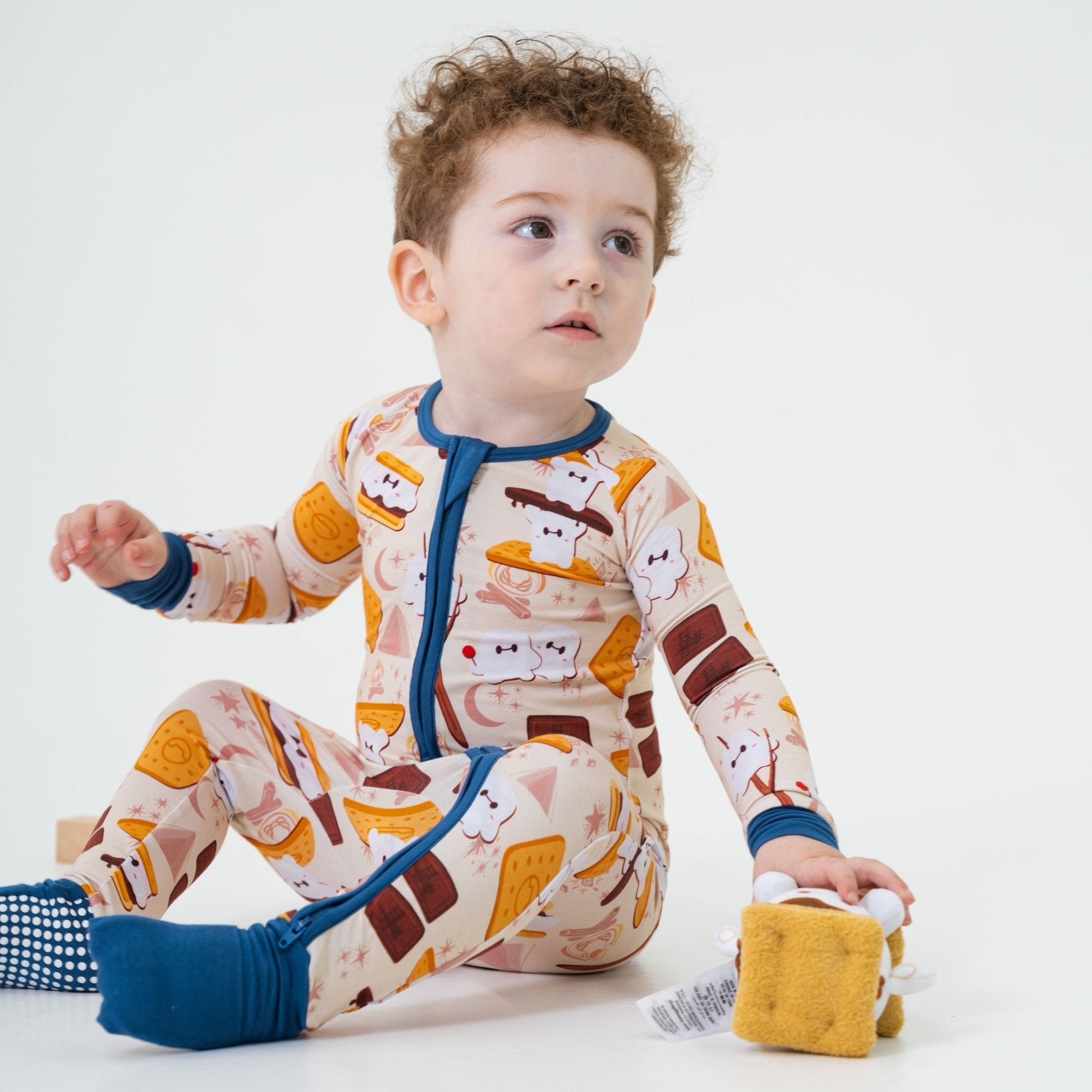 Our S'moreMax convertible romper brings delicious fun to your little one’s wardrobe. Featuring a playful stack of marshmallows, chocolate, and graham crackers, this versatile essential is perfect for sleep, play, and everything in between.