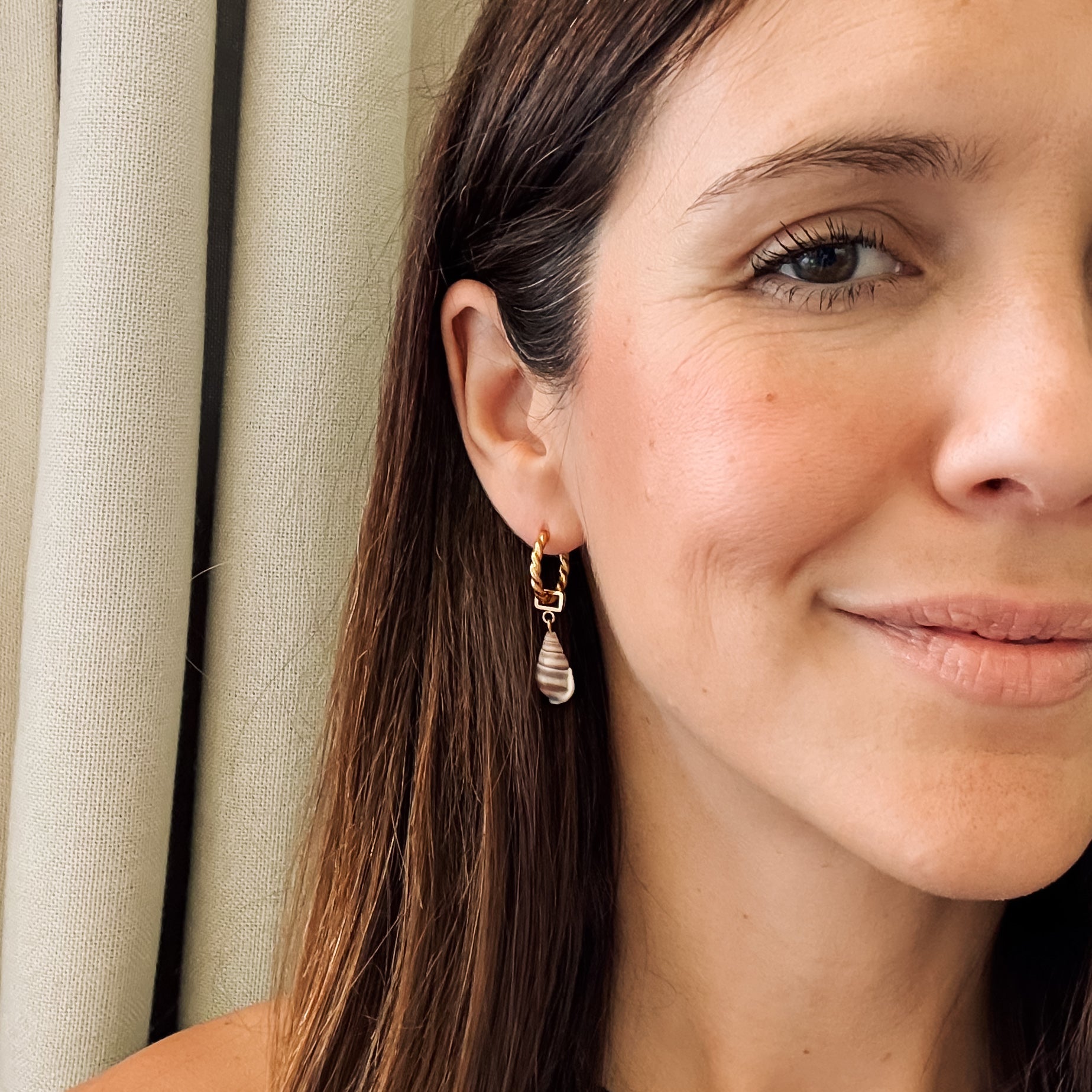This charm is styled on our Chunky Scalloped Huggies (Gold) and Chunky Textured Huggies (Silver).