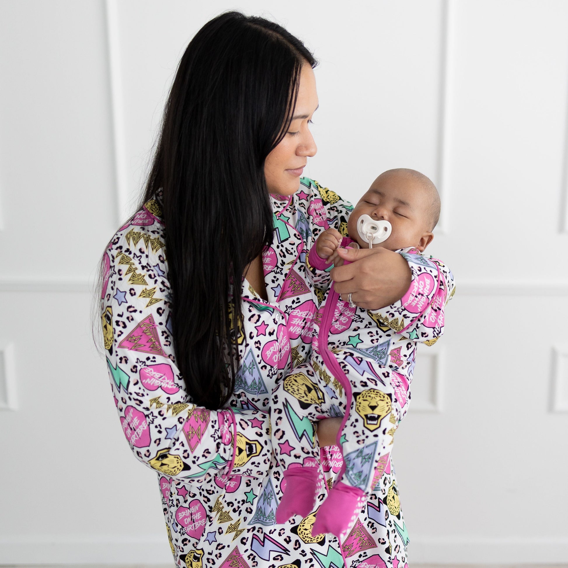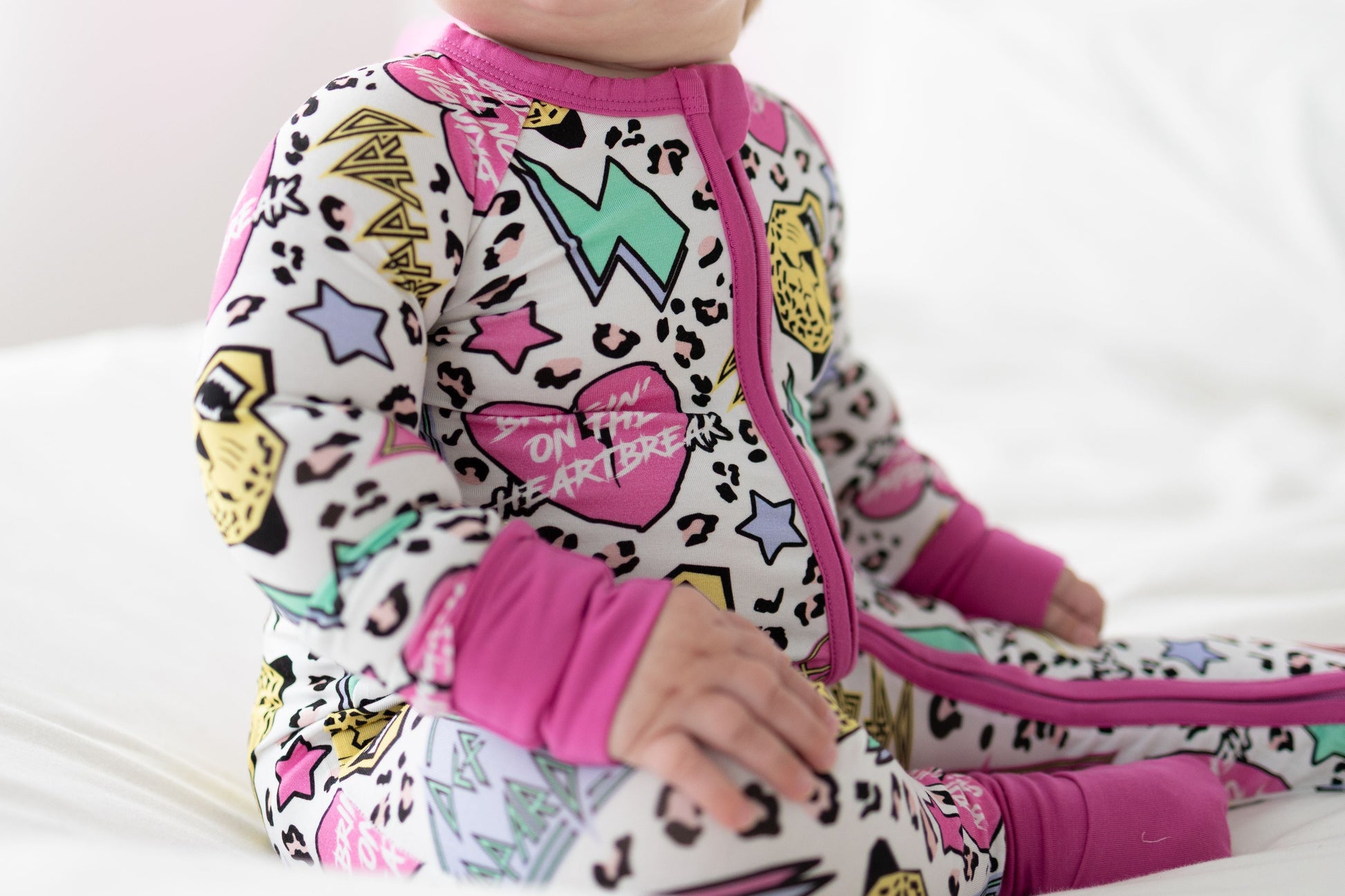 Rock your little one’s world with our Sugar on Me Romper, part of our official collaboration with Def Leppard. Featuring bold pops of pink, electric graphics, and iconic band details, this romper is the ultimate mix of cozy comfort and rock ’n’ roll style. Crafted from our signature bamboo lyocell, it’s breathable, stretchy, and soft enough for all-day wear—whether they’re snoozing, playing, or joining in on the family jam session.