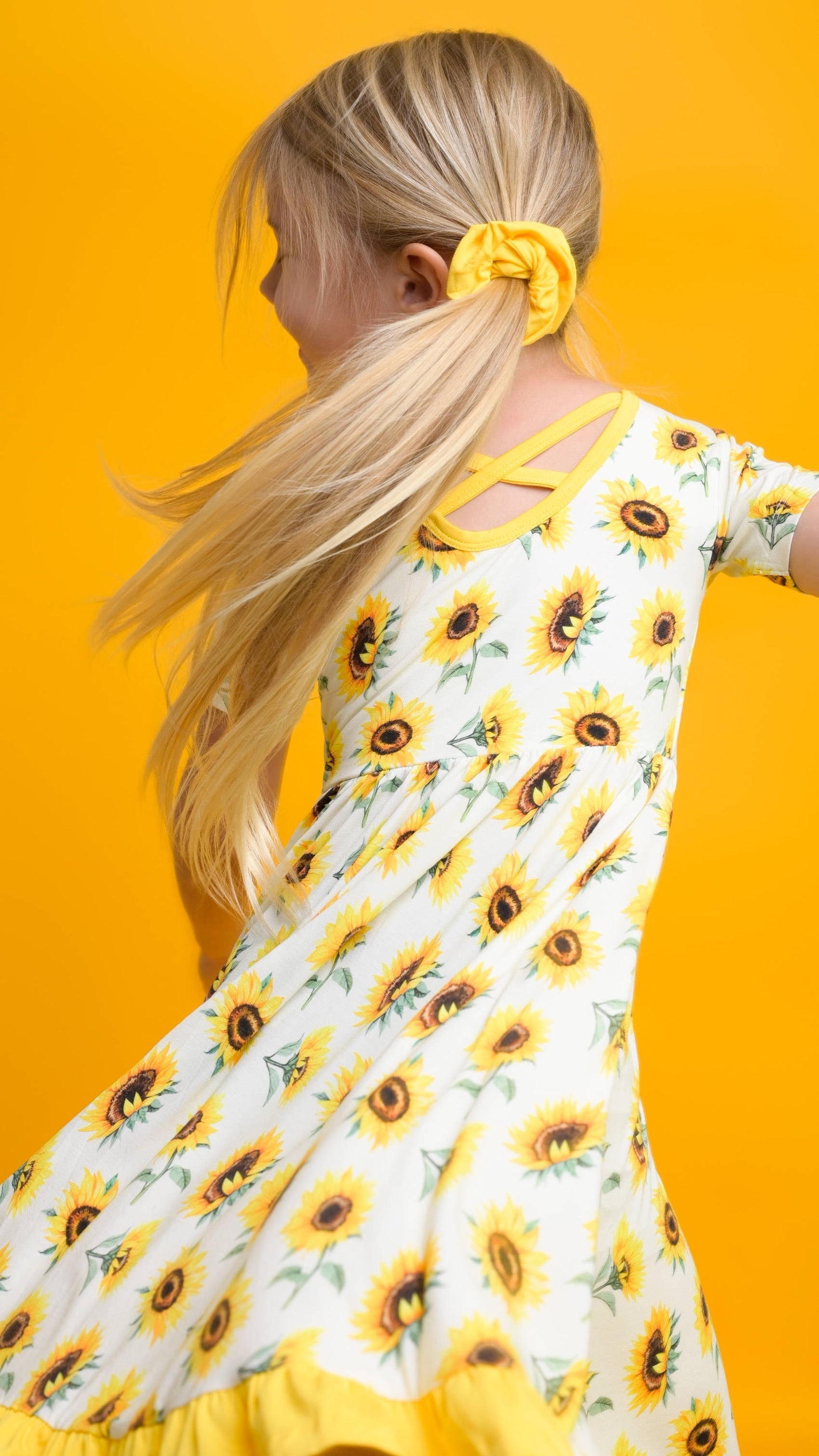 Sunflowers | Toddler & Girls Bamboo Ruffle Twirl Dress