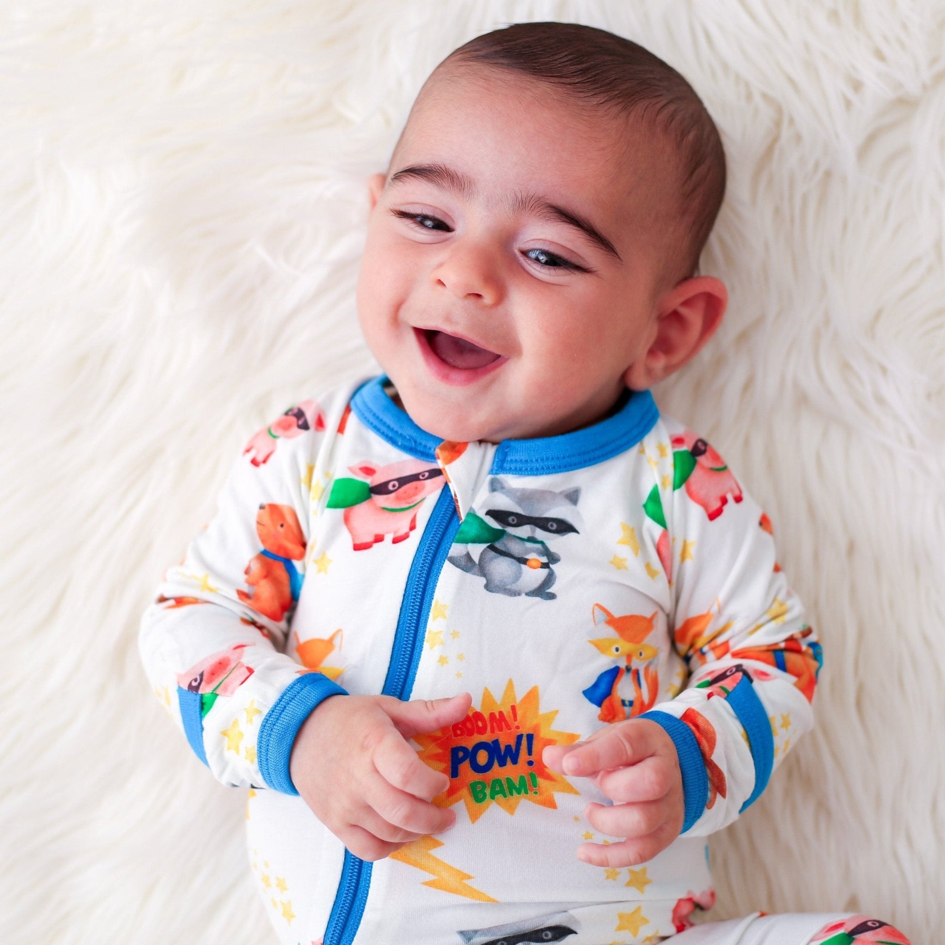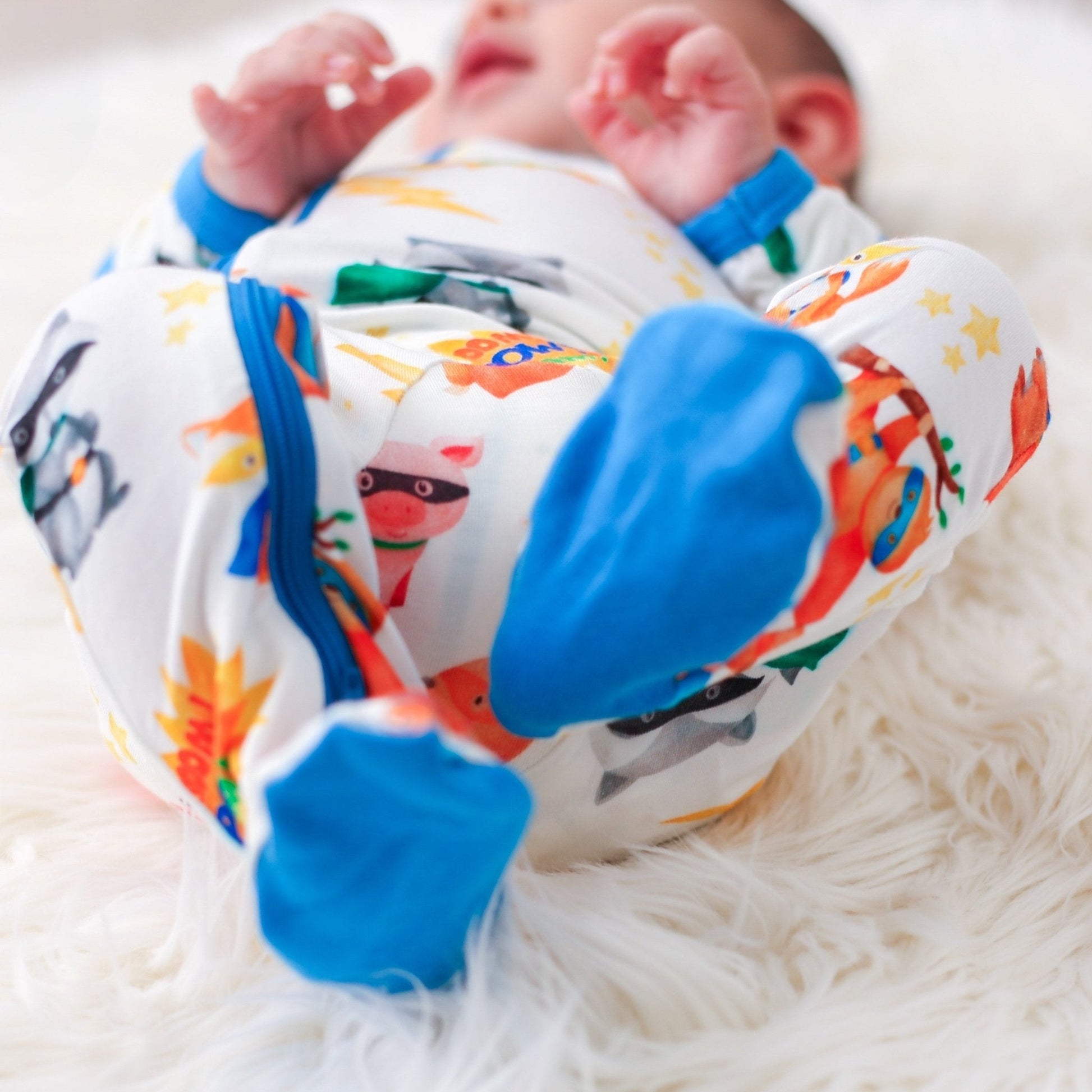 Our amazingly soft footies will keep little one's super cozy and snuggly from top to bottom! These soft as a baby's bottom footies are perfect for year round lounging. 2-way, dual zipper from neckline to those adorable little chubby feet make for easy breezy changing. We also made sure to add built in fold over hand mittens on NB and 0-3M to prevent scratching and worry free zip tabs to keep zippers away from little chins.Â