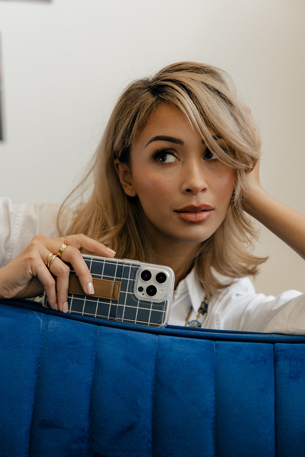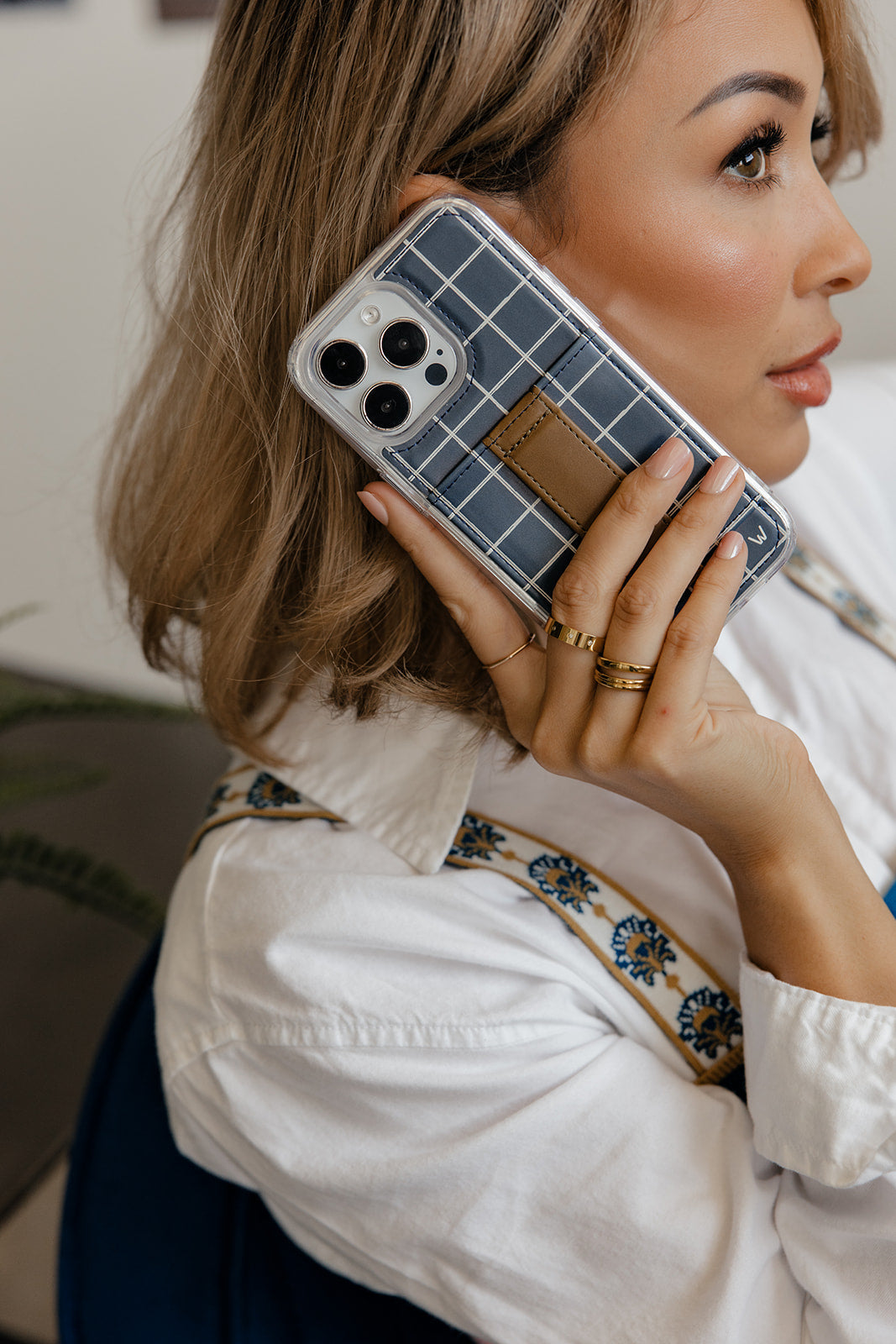 Case Design: Navy with white plaid stripes
