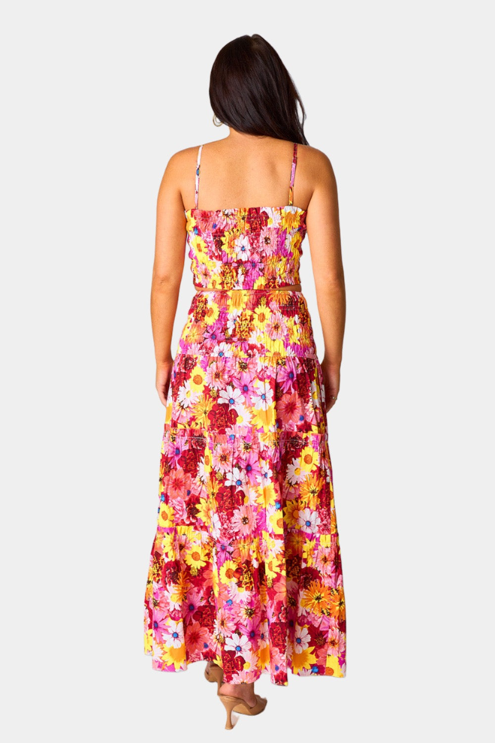 This new set will have you booking your next vacation! The Tamra Set features a fully smocked cropped tank top with adjustable straps. The skirt features a smocked waist and tiers. Her comfortable fit and bold design make her the perfect combination for your next favorite outfit!