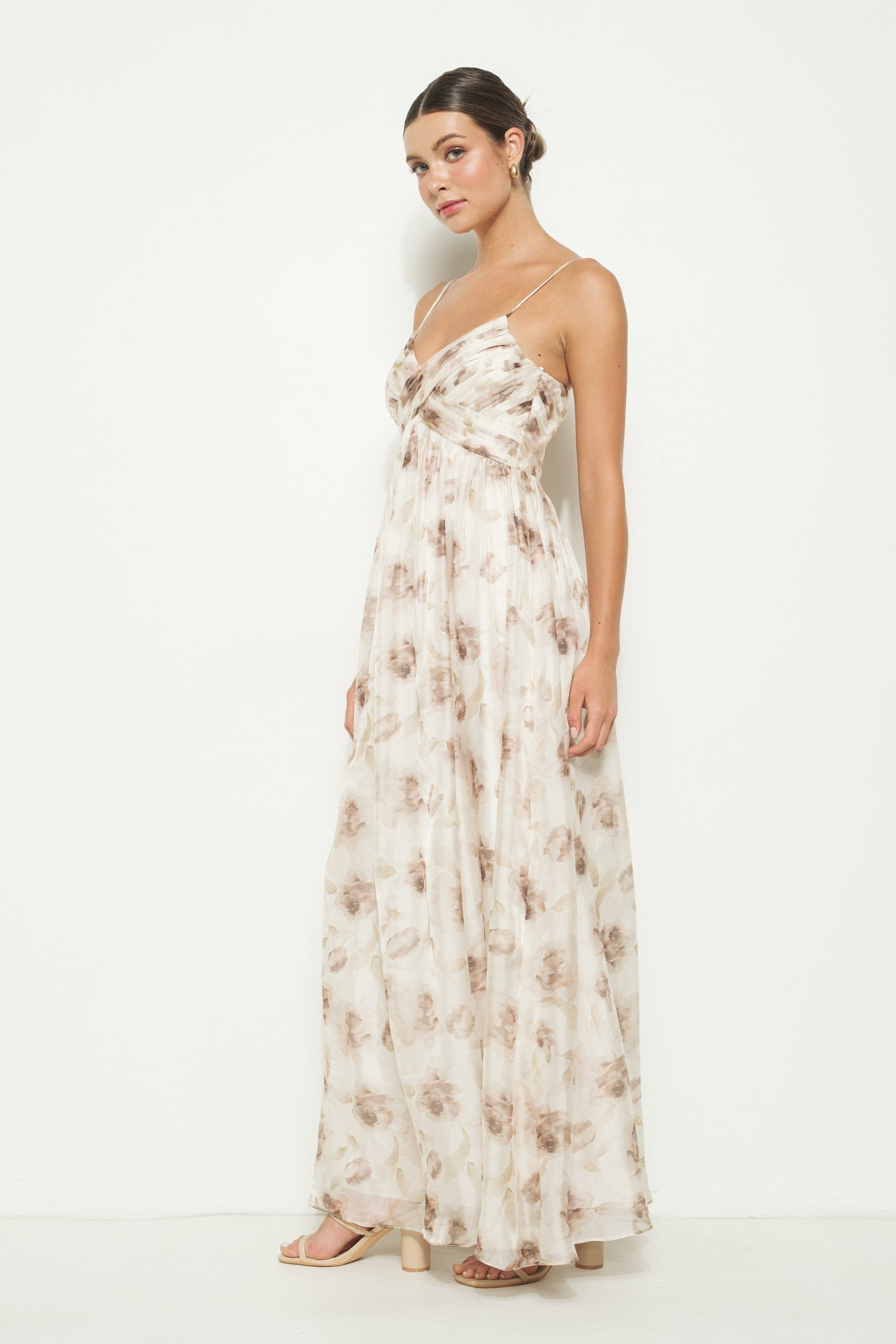 Taupe Multi Floral Print Sleeveless Maxi Dress