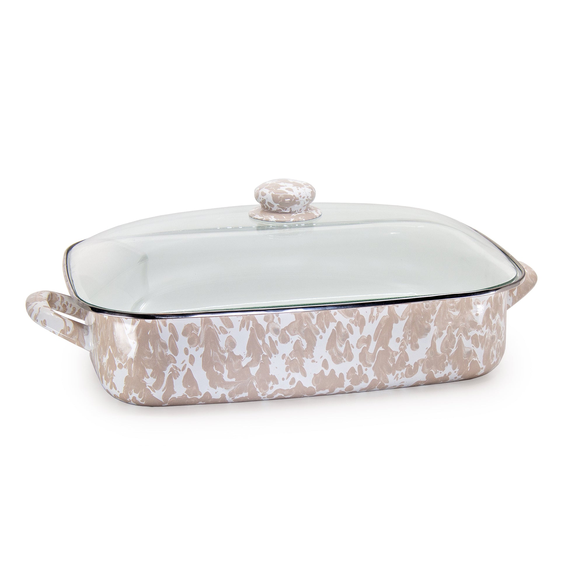 For a neutral yet elegant look, the Taupe Swirl Roasting Pan is the perfect choice. Featuring a soft taupe swirl design, this enamelware pan is ideal for roasting meats, vegetables, or casseroles. Durable, easy to clean, and versatile, it brings a touch of refinement to your kitchen.