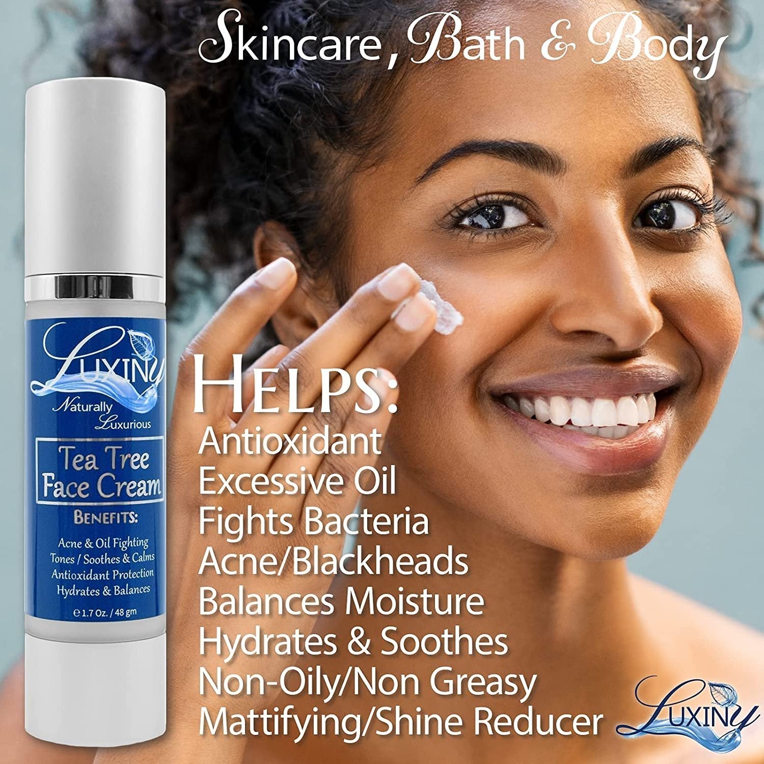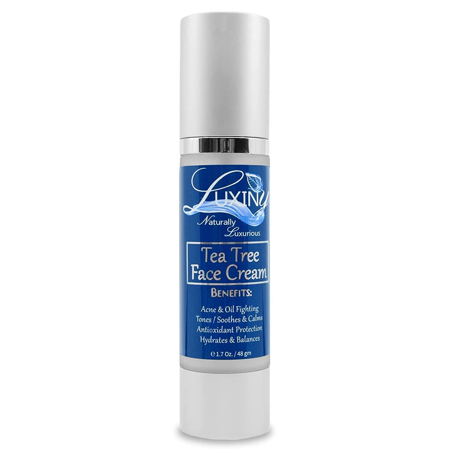Luxiny’s Tea Tree Face Cream is a soothing and moisturizing formula designed to calm troubled skin. With Organic Aloe and Tea Tree Oil, this cream helps reduce swelling, irritation, and redness caused by acne, rosacea, dry skin, and eczema.