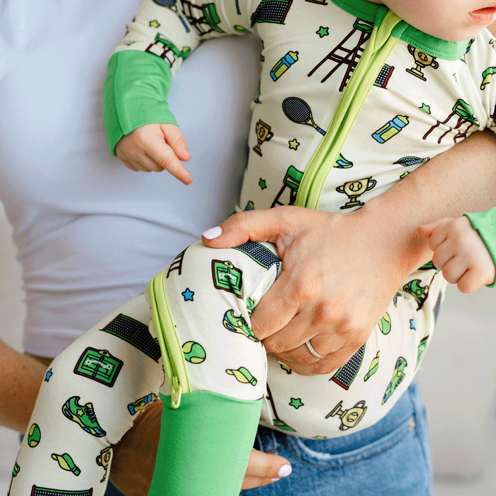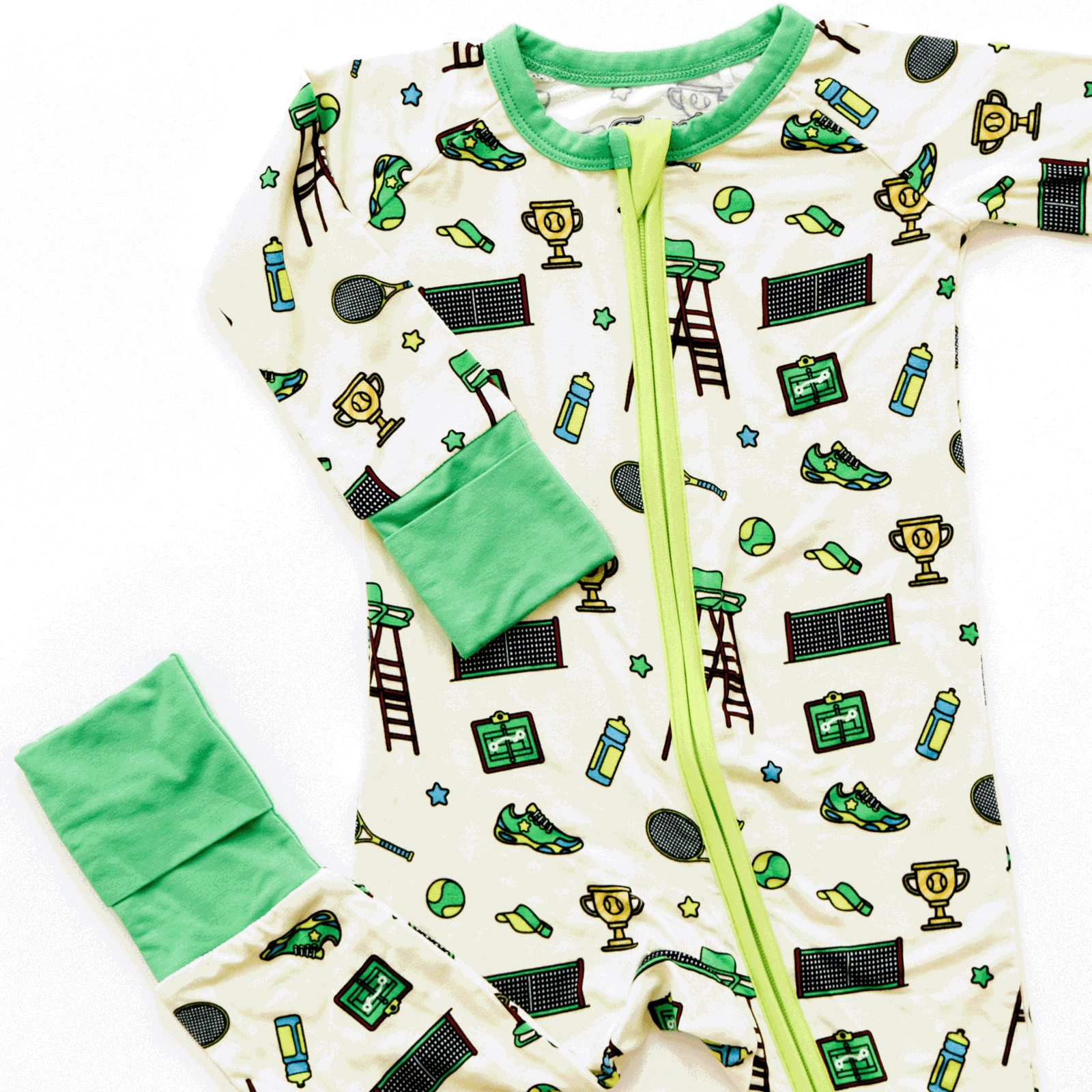 Thoughtfully designed for busy parents and active babies, this one-piece includes a double zipper for easy diaper changes, convertible footies, and fold-over mittens in sizes 3–24M. Whether they're dreaming of Wimbledon or just bouncing around the nursery, your little champ will stay comfy and ready for match point.