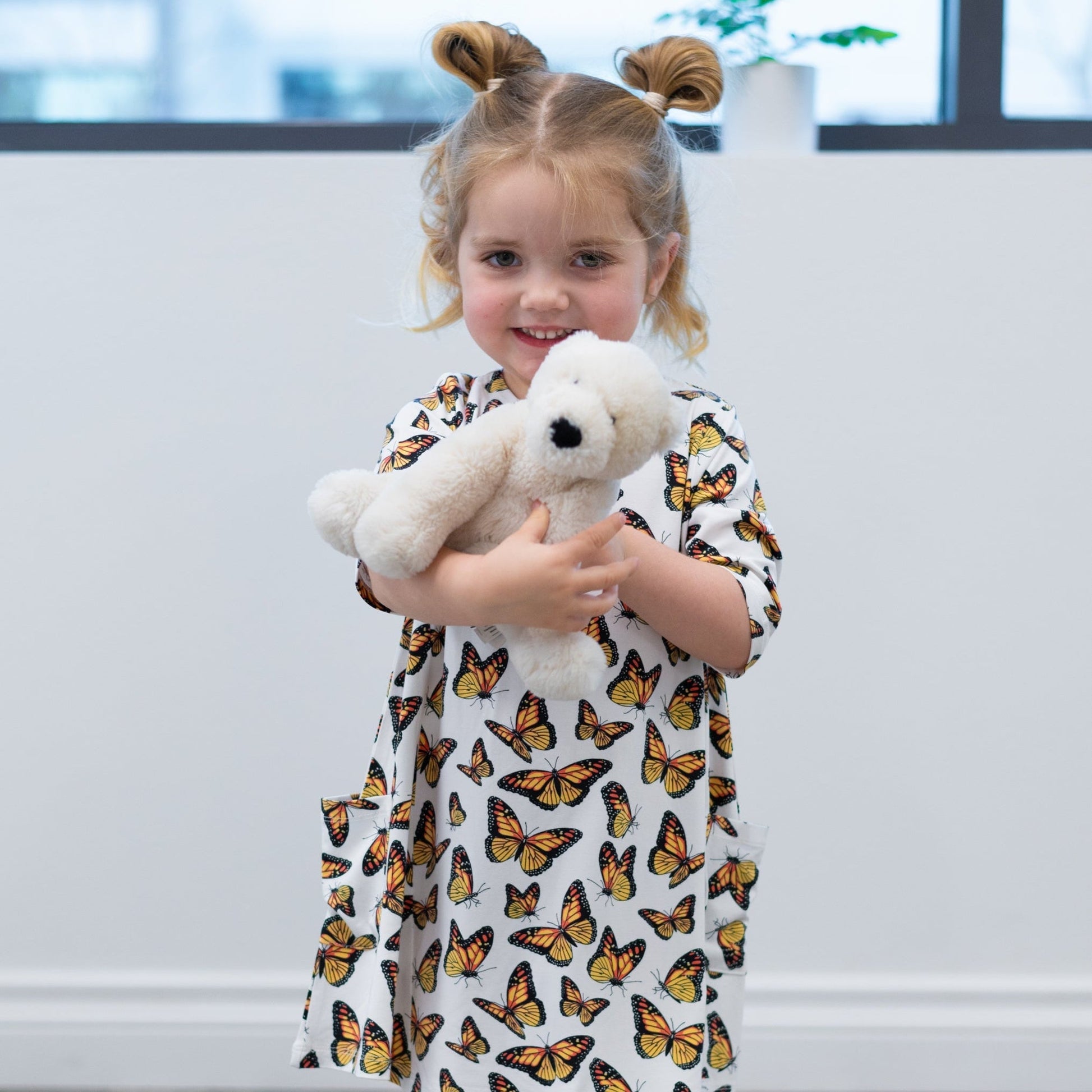The Miss Mayhem is perfect with just leggings or stand-alone. With 3/4 length sleeves and perfectly sized pockets, it is sure to be your adventurous missy's favorite!
