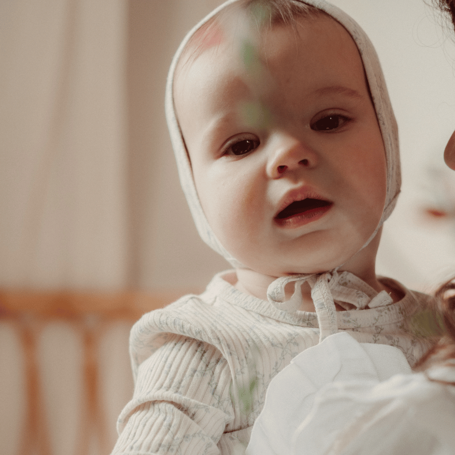 Cover and protect your little baby with this cute pixie style bonnet. Pair it with a matching romper to complete the look.