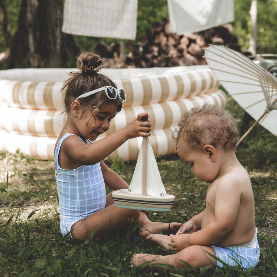 Make a splash with our Swim Short! These little boys swim shorts have all the fun and none of the fuss, featuring a cool blue grid pattern for maximum beach-side appeal. Pool perfect!