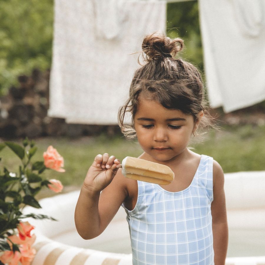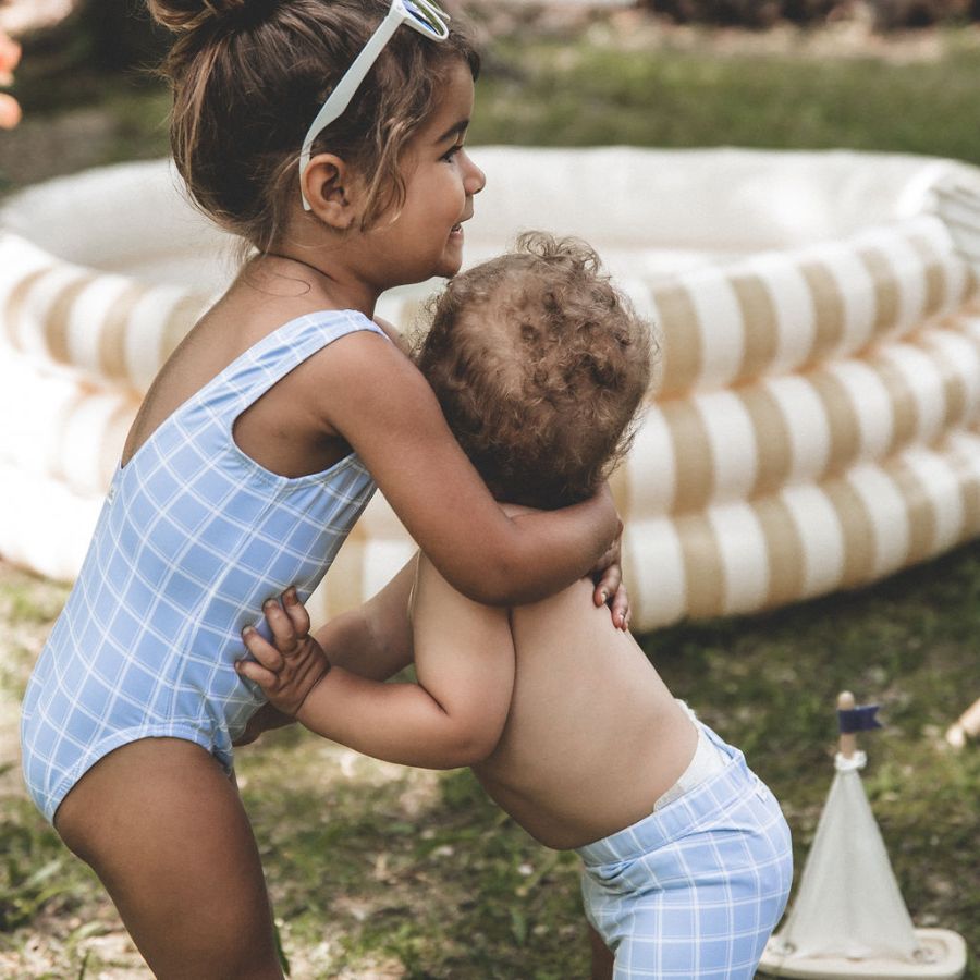 Dive into summer fun with The Printed Swimsuit! The perfect blend of fun and function, this suit is designed for maximum beach or pool time. Featuring a whimsical blue grid pattern, you'll be sure to stand out and make a splash. Let the good times roll!
