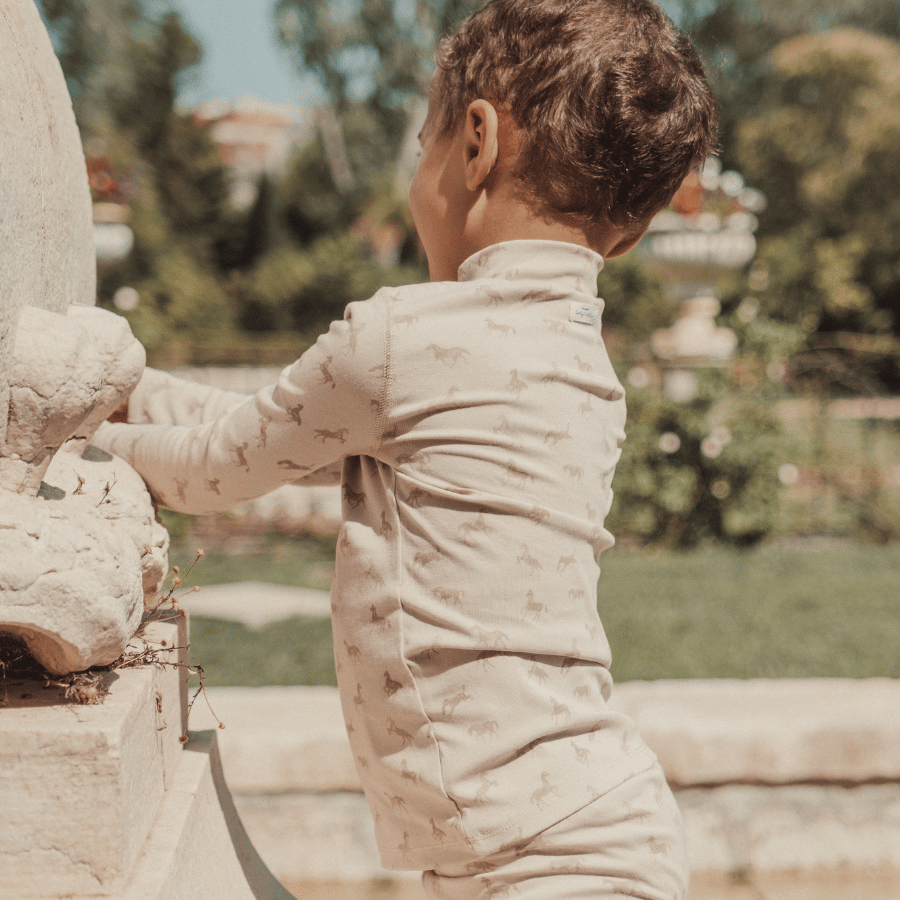 A lightweight, soft turtleneck designed just for kids. Featuring a charming horse print, it combines playful style with comfortable wear, making it perfect for all their fun-filled days.