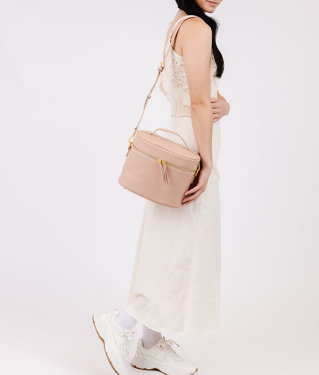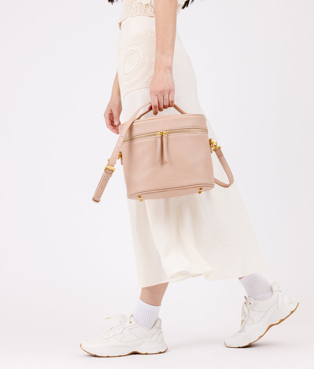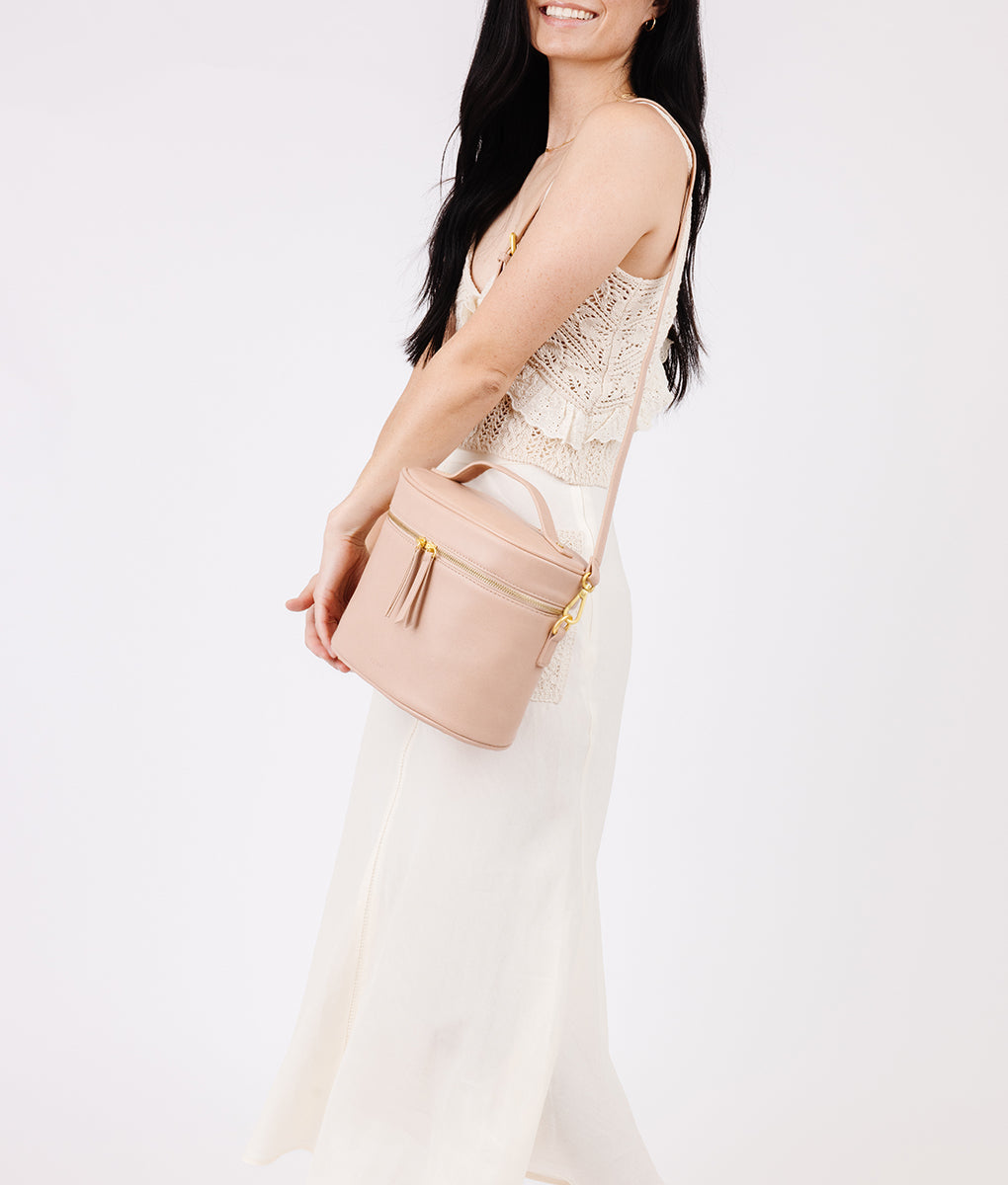 Store your cosmetic and toiletry essentials in style with the Fawn Train Case! This sleek zip-around closure case is made from premium matte faux leather and includes an adjustable messenger strap. The Train Case can fit all your daily must-haves, from skincare, haircare and make-up, to deodorant and a toothbrush. It includes 4 elastic band holders, 5 interior pockets and a zipper pocket to keep jewelry and other smaller items secure. The Train Case makes for perfect toiletry bag for travel and everyday use!