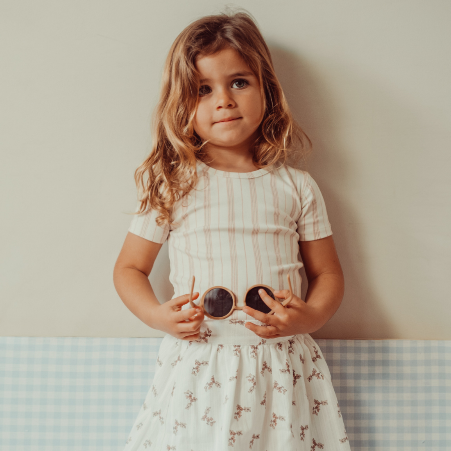 This soft printed cotton floral skirt for kids adds a stylish upgrade to any wardrobe. Mix and match with the matching lola tee for a complete and chic look.