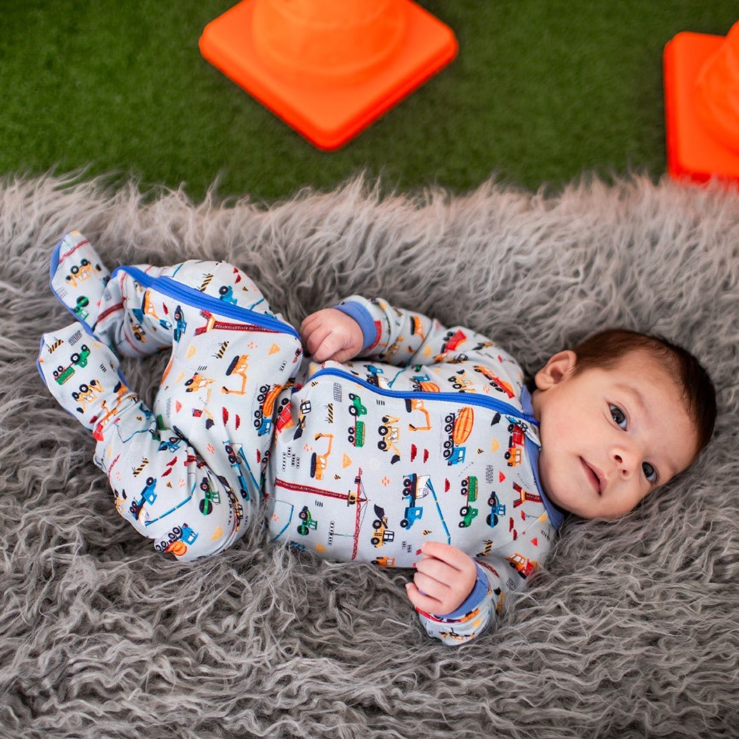 Keep your little snuggled up in our Construction print footie! Made with super soft bamboo, this footie features construction car all over the print and a dual 2-way zipper for hassle-free diaper changes. Plus, keep little hands warm with fold over mittens on NB and 0/3m sizes, and foot grips on larger sizes. So soft and cozy, your baby will love it!