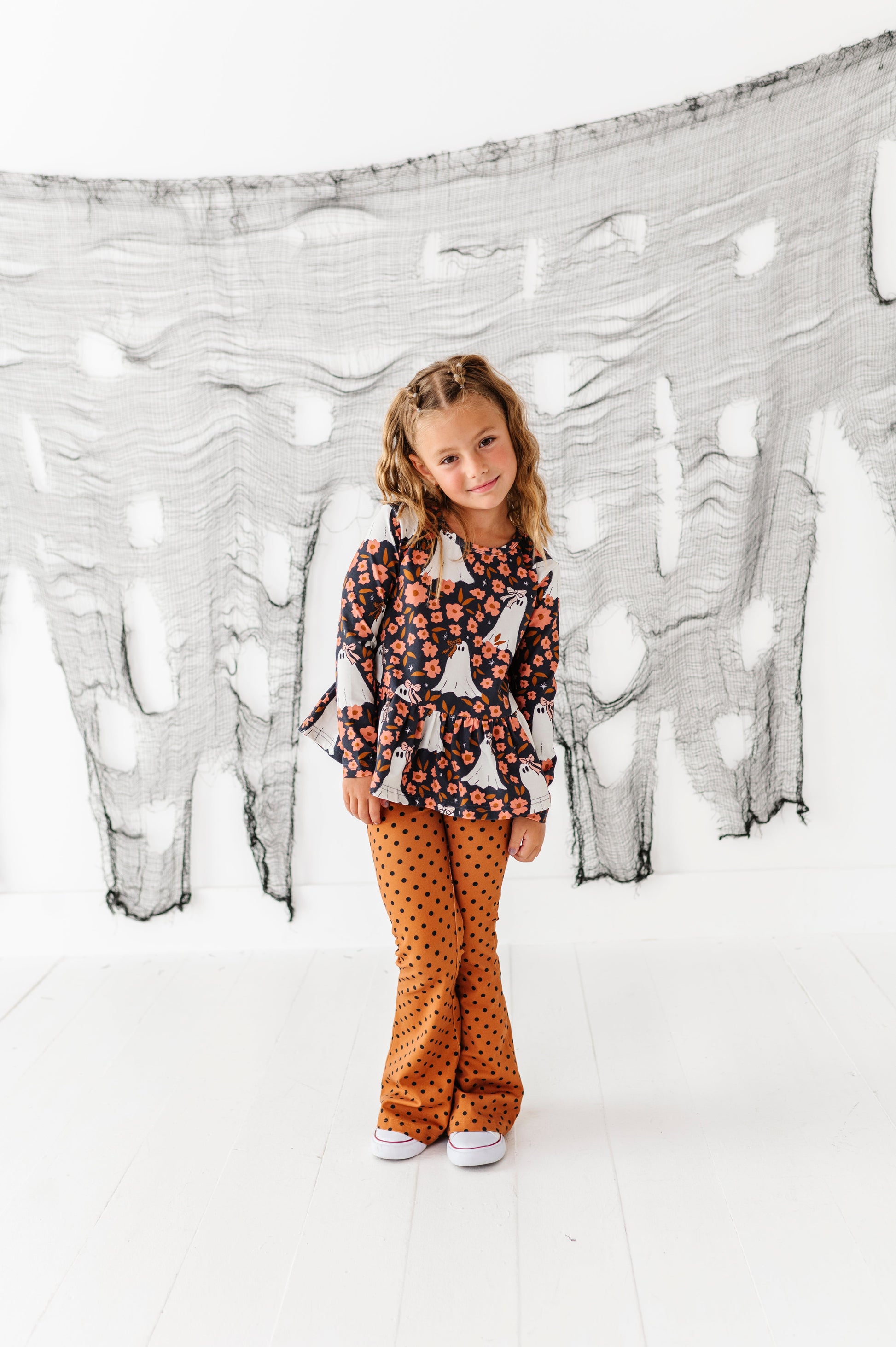 This item runs true to size. These are made to fit snug in the waist/hips and top of legs and then flare at the knee down. If you have a girl with long legs we recommend ordering the size she needs for pant length! If you have a shorter girl we don't recommend sizing up because you don't want flares to drag on the floor :)