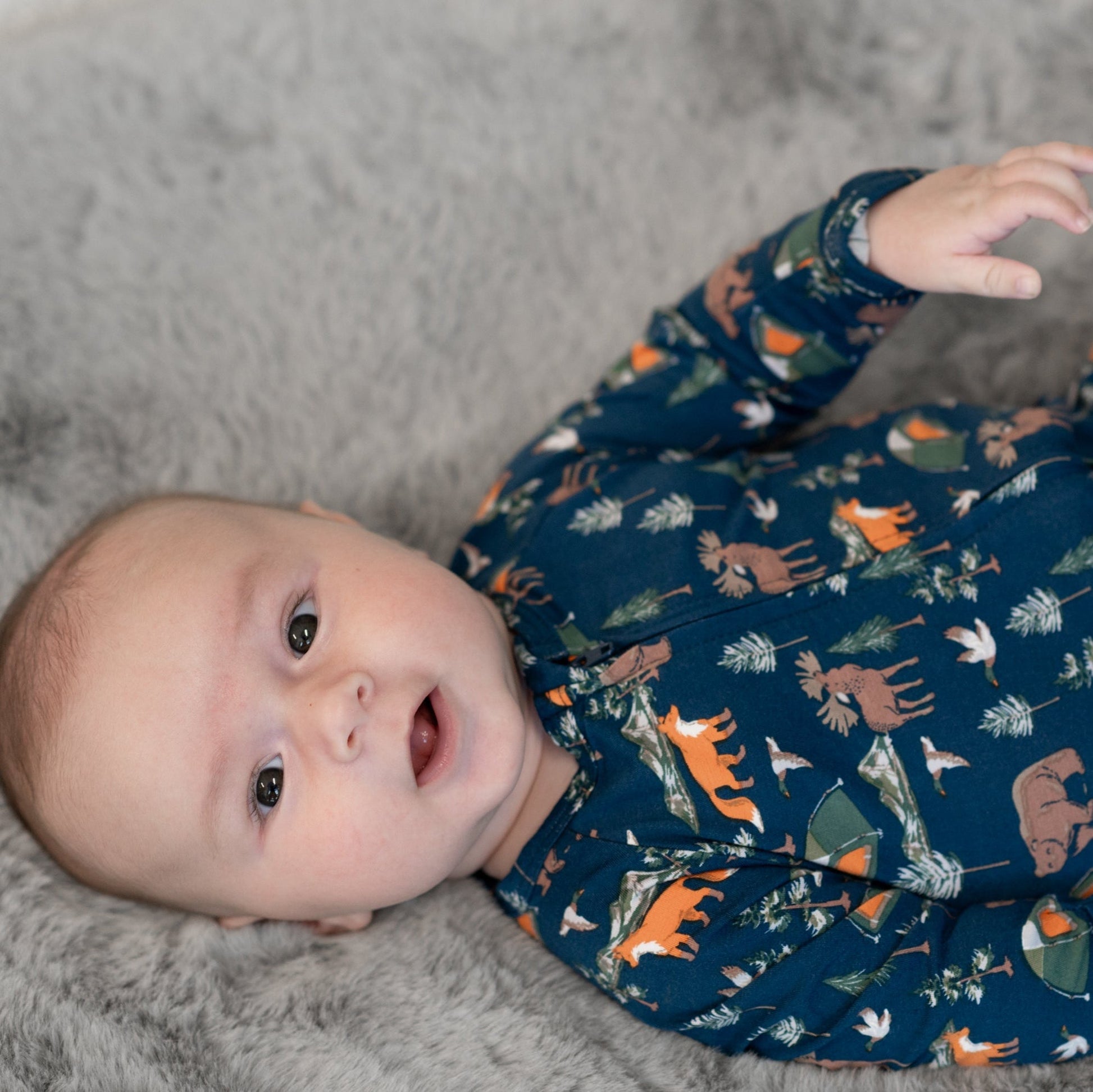 Ask and you shall receive. This yummy footie is equipped with a smooth 2-way zipper, silicone grips on the foot pads and fold-over handcuffs. Plus our silky-soft fabric hugs in all the right places to show off those baby curves.