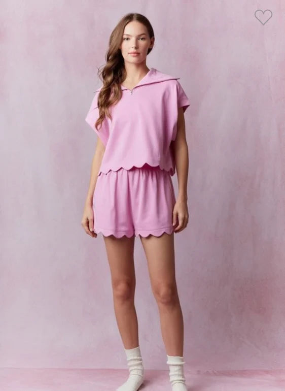 Tween Pink French Terry Scallop Hem Shorts & Dolman Sleeve Top | Mix & Match Lounge Set – Bossier City Boutique