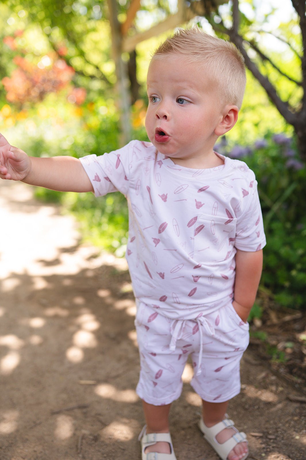 Our Surf Bamboo short set is designed to be soft and lightweight with the perfect amount of stretch. Features a pocket shirt and shorts with functional pockets and drawstring. Bamboo is amazingly soft and gentle on the skin.