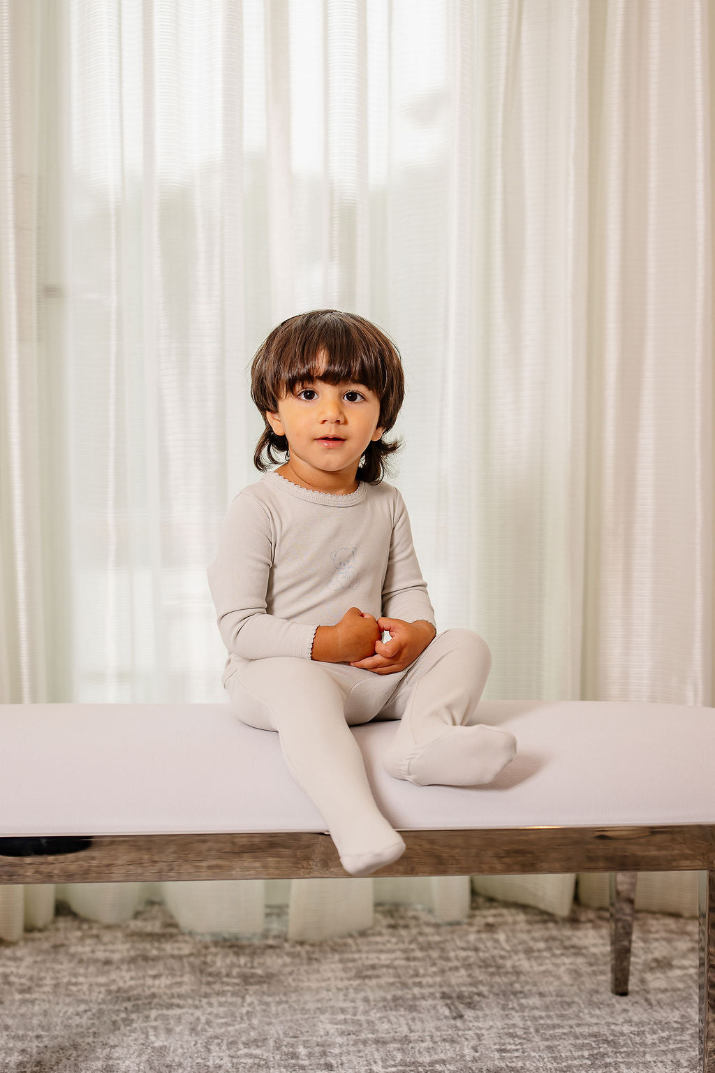 The Vintage Bear Footie in Blue is a must-have with its adorable vintage bear graphic and beautiful fit that hugs your little one comfortably. Complete with a matching hat, this playful set is perfect for cozy days filled with charm and fun!
