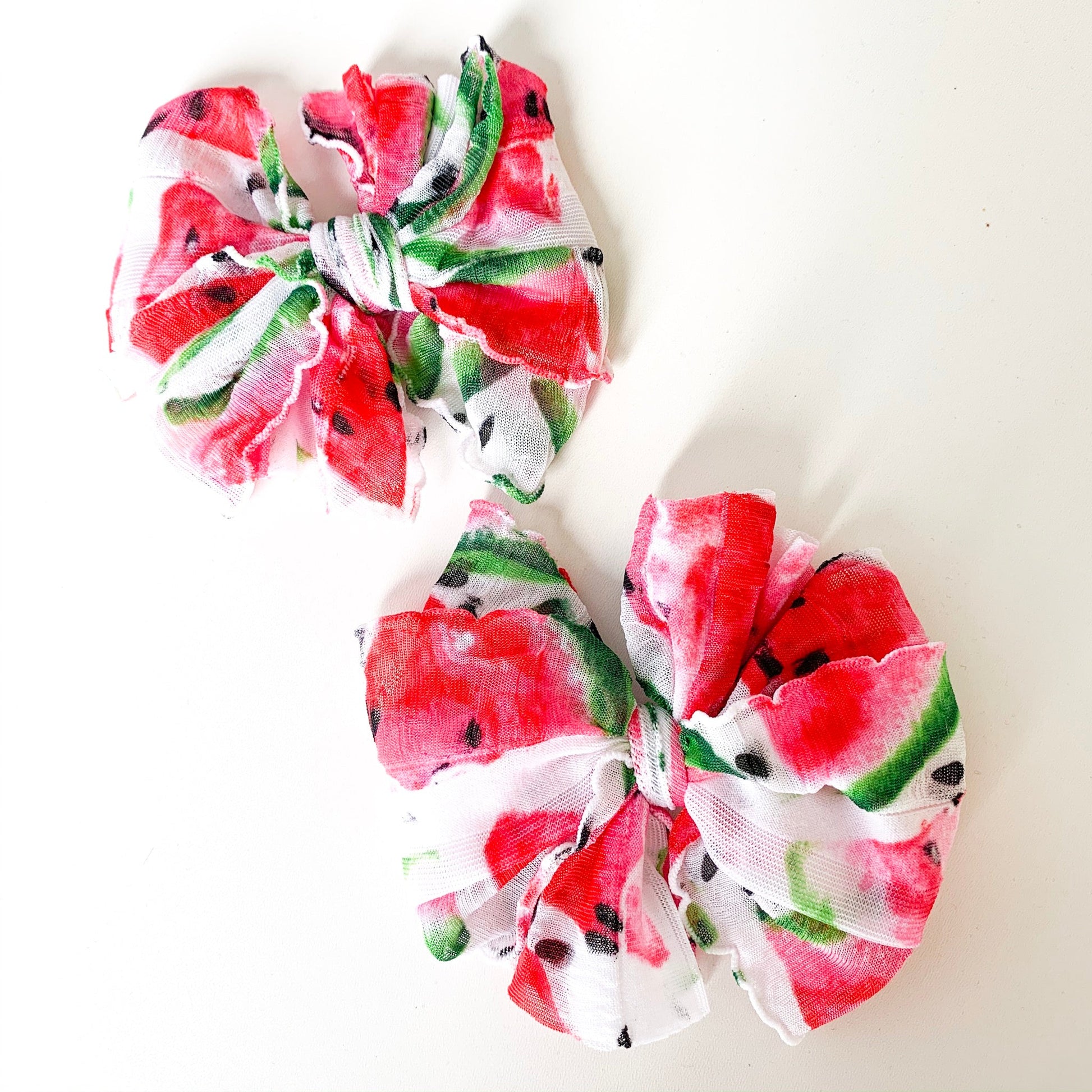 This vibrant Ruffled Piggy Set in Watermelon adds a juicy, playful touch to your little girl's hairstyle! Crafted from our signature ruffled fabric, these clips feature a textured design that brings a bold, fun pop of color to any look. Each clip is securely attached to a metal clip and backed with soft felt for a comfortable, snug fit. Measuring 3.5 inches in width, these clips are the perfect size for pigtails, a timeless style that will stay cute as your child grows. Keep your little one looking lively and stylish with these sweet Ruffled Clips from Rockin Royalty!