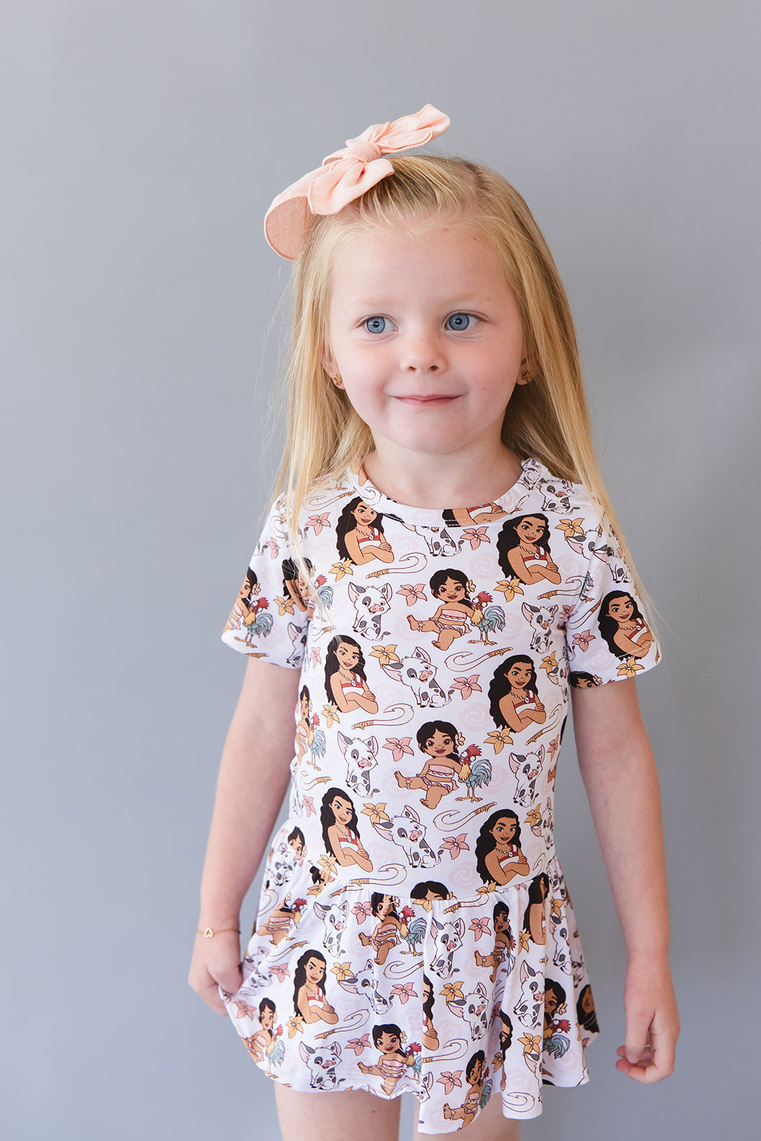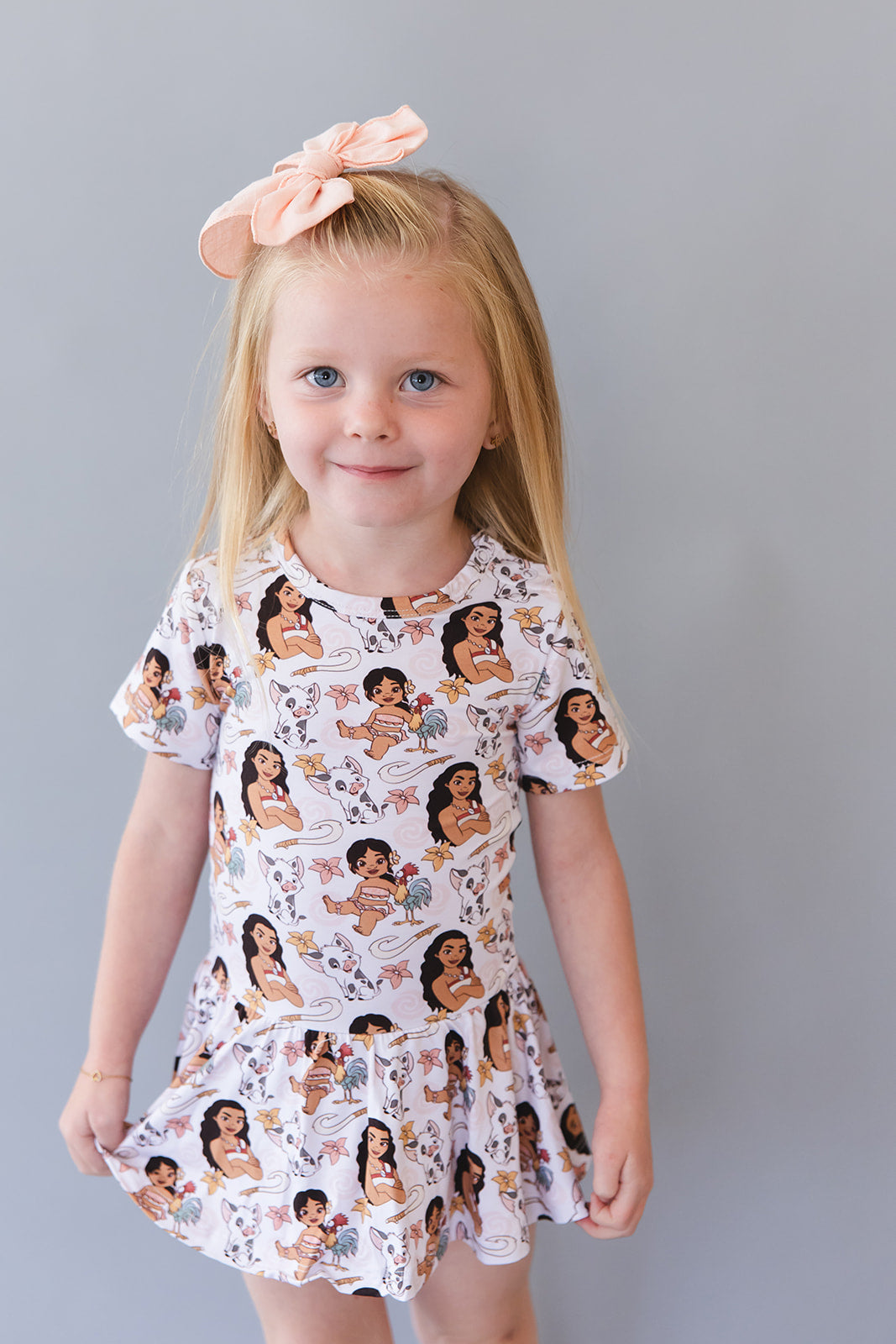 Crafted from buttery-soft, breathable bamboo viscose, these dresses provide all-day comfort for your little one. The built-in bodysuit includes snap closures for quick and hassle-free diaper changes, making them as practical as they are adorable.